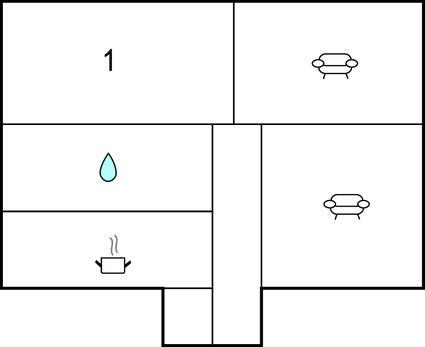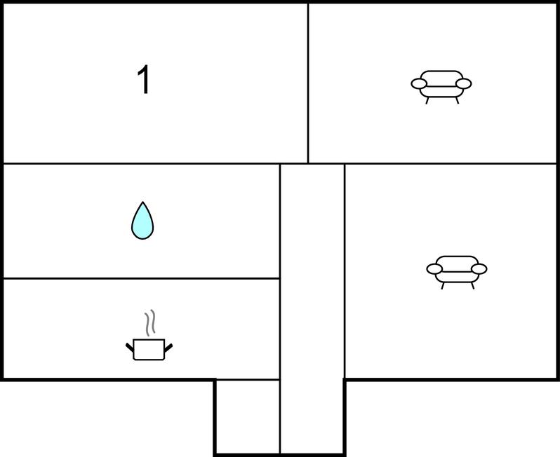 Badeværelse (nr. 1) - WC. Varmt og koldt vand. Bruser