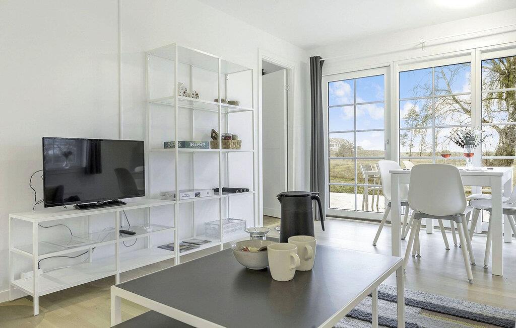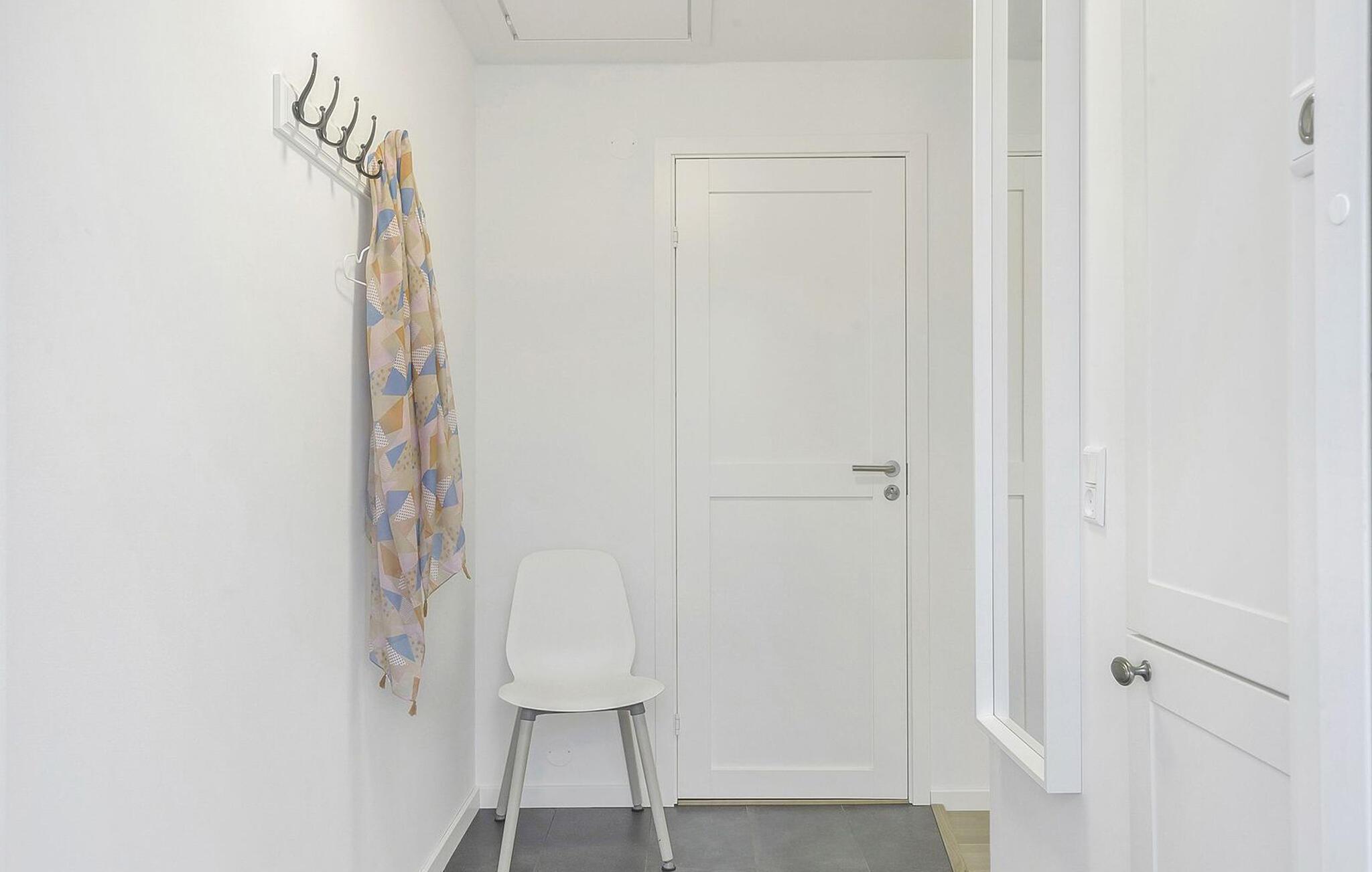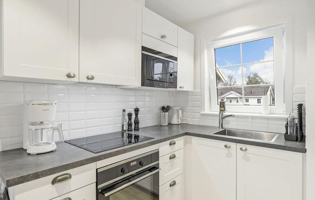 Træd indenfor, og læg hverdagen bag jer. Denne lyse lejlighed i stueetagen indbyder til at nyde øens ro i fulde drag. Store vinduespartier giver udsigt over havet og fylder rummet med lys og en venlig atmosfære. Hyg jer sammen i den store sofa, og nyd det moderne, enkle interiør med bløde farvetoner og stilfulde detaljer. Tilbered jeres morgenmad eller en hyggelig aftensmad i det åbne køkken-alrum, og spis ved det lyse spisebord med udsigt over landskabet. Lejligheden er gennemtænkt indrettet og tilbyder al den komfort, der skal til for et afslappet ophold.