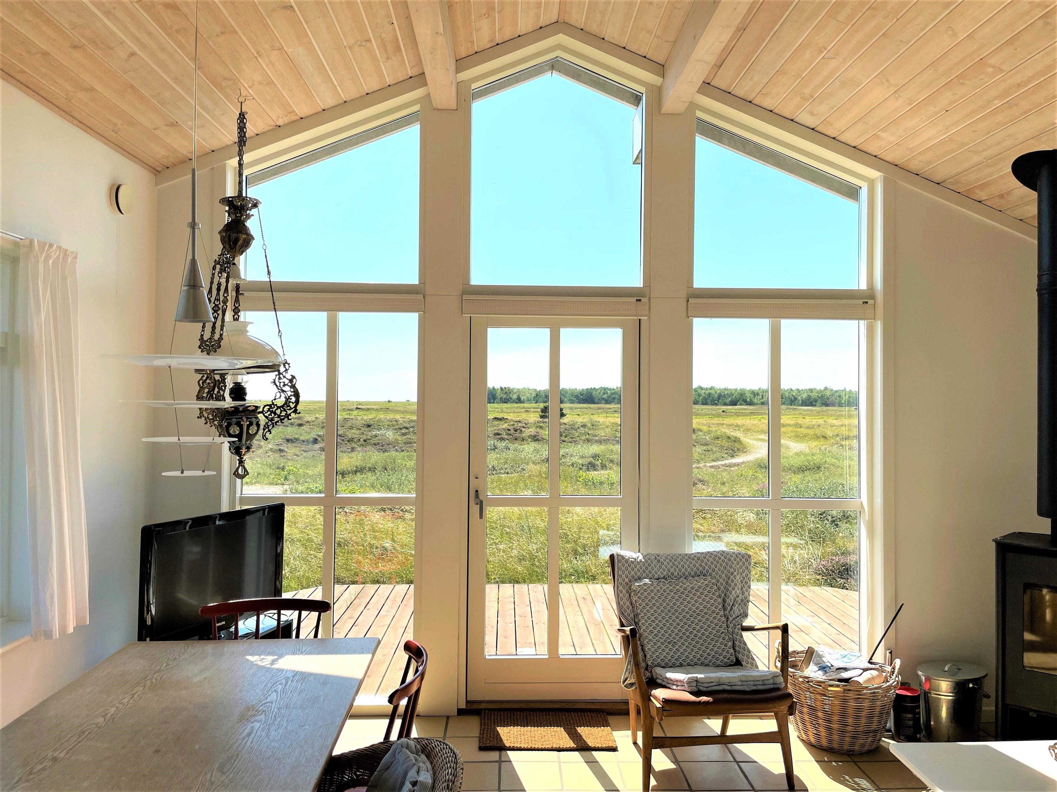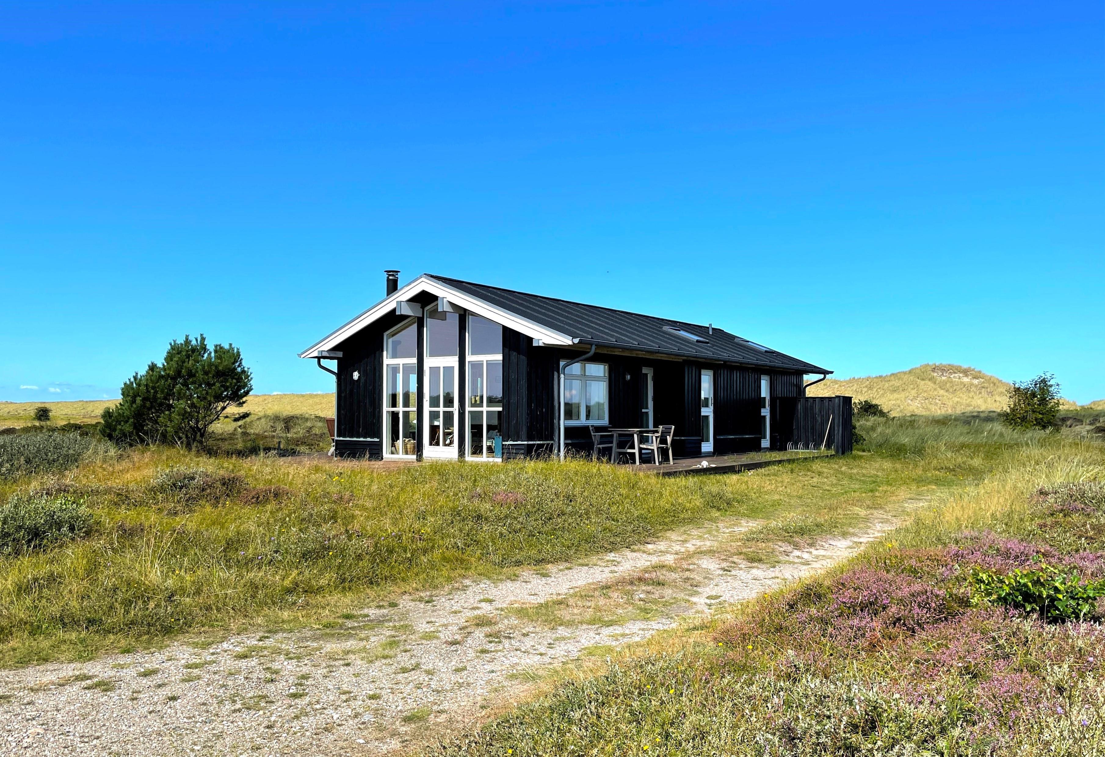 Unik beliggenhed. Fantastisk smukt beliggende i læ af Danzigmann's høje klitter findes dette charmerende feriehus med privat sti til stranden. Lyst og dejligt indrettet med fint køkken/alrum, hyggelig stue med tv via ChromeCast og brændeovn. Tre soverum med gode senge - et med dobbeltseng, ét med to enkeltsenge og et med én enkeltseng. Der er udgang fra alle soveværelser. Et fint badeværelse med brus. Udebruser på vestsiden af huset. 2.5 km. til Østerby Havn med marina, restauranter, fiskehandel og gode indkøbsmuligheder. Her finder man Læsøroen og stilheden, der kun afbrydes af fuglesang og havets brusen.