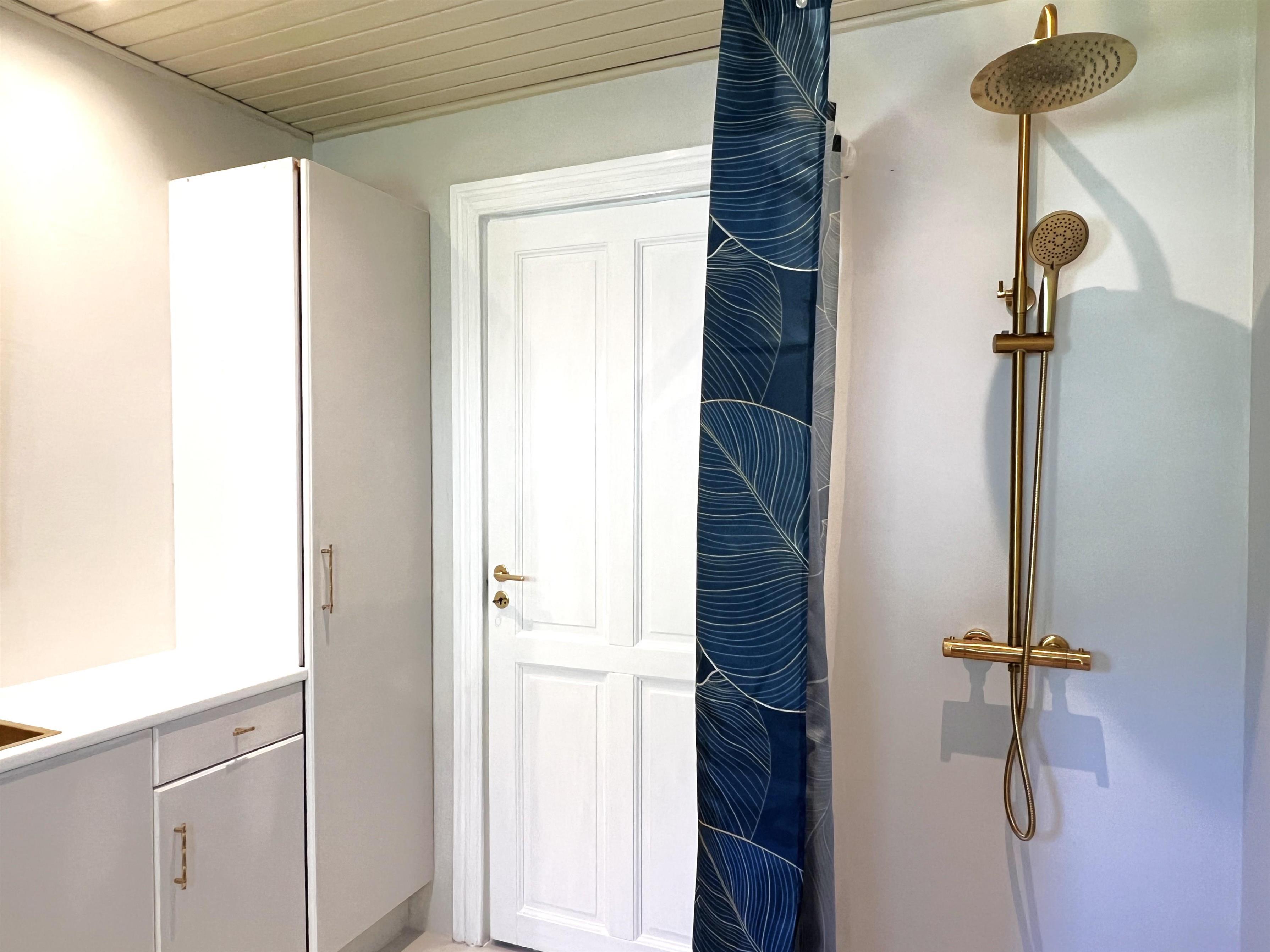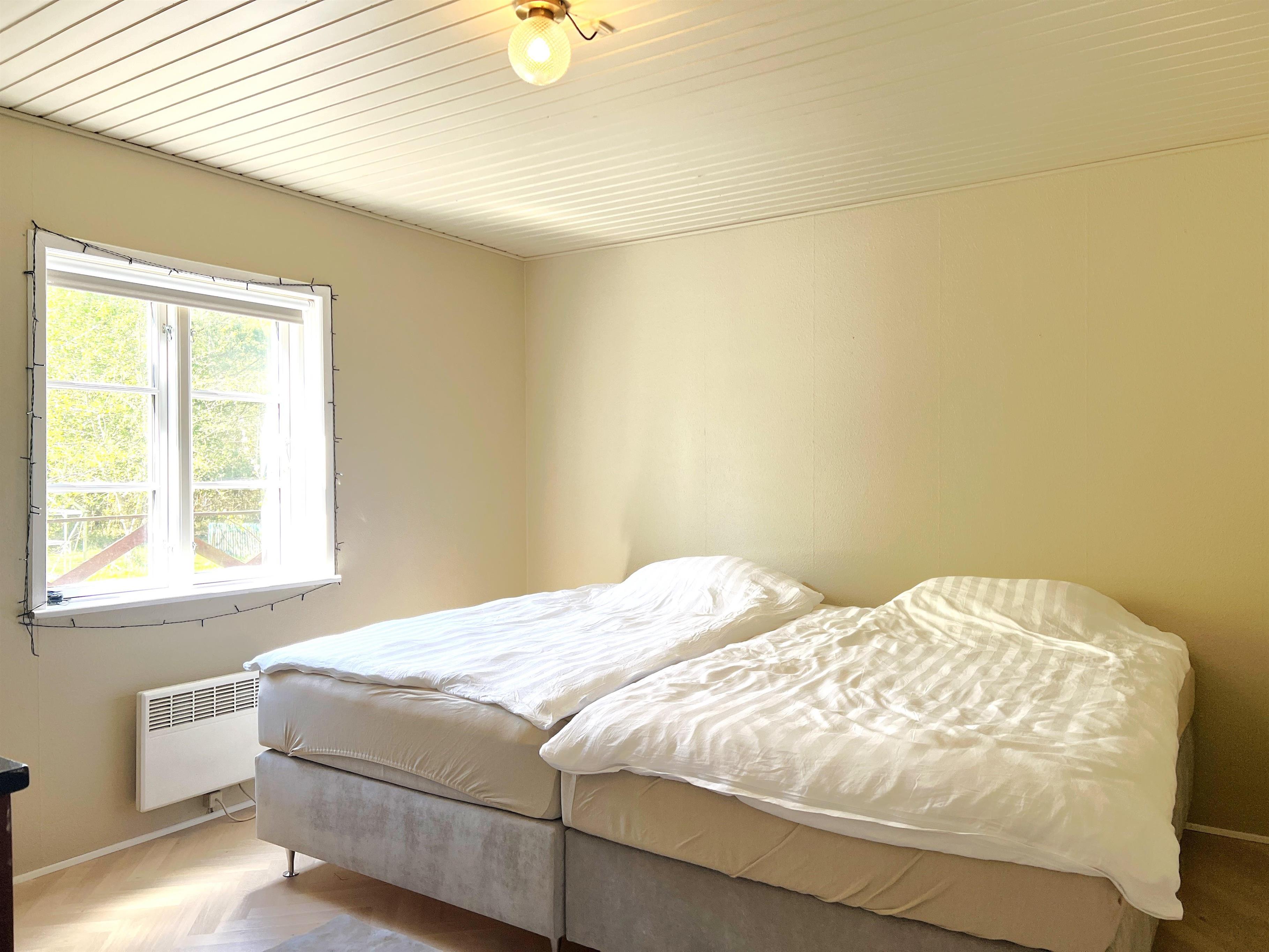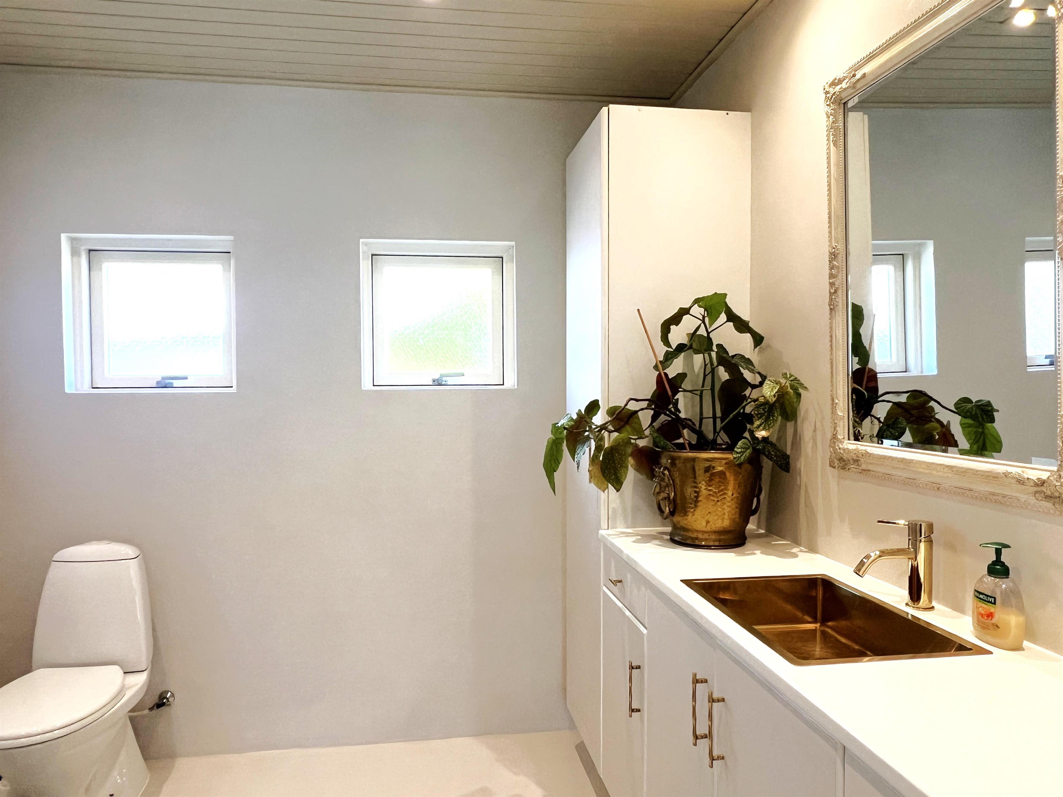 Der er desuden to gode, rummelige soveværelser med fine store, komfortable dobbeltsenge. Det tredje soveværelse med en mindre dobbeltseng egner sig måske bedst til en person, men to er også muligt. Fra et af de store soveværelser er der direkte adgang til fint badeværelse. Huset har hele to flotte badeværelser med brus og smagfuld indretning med bl.a. vandhaner og brusehoveder i messing. Der er yderligere bryggers med vaskemaskine og tørretumbler. I forlængelse af hovedhuset er der et fint anneks med endnu en stor dobbeltseng og en rigtig hyggelig havestue, der forlænger de lune sommeraftener.
