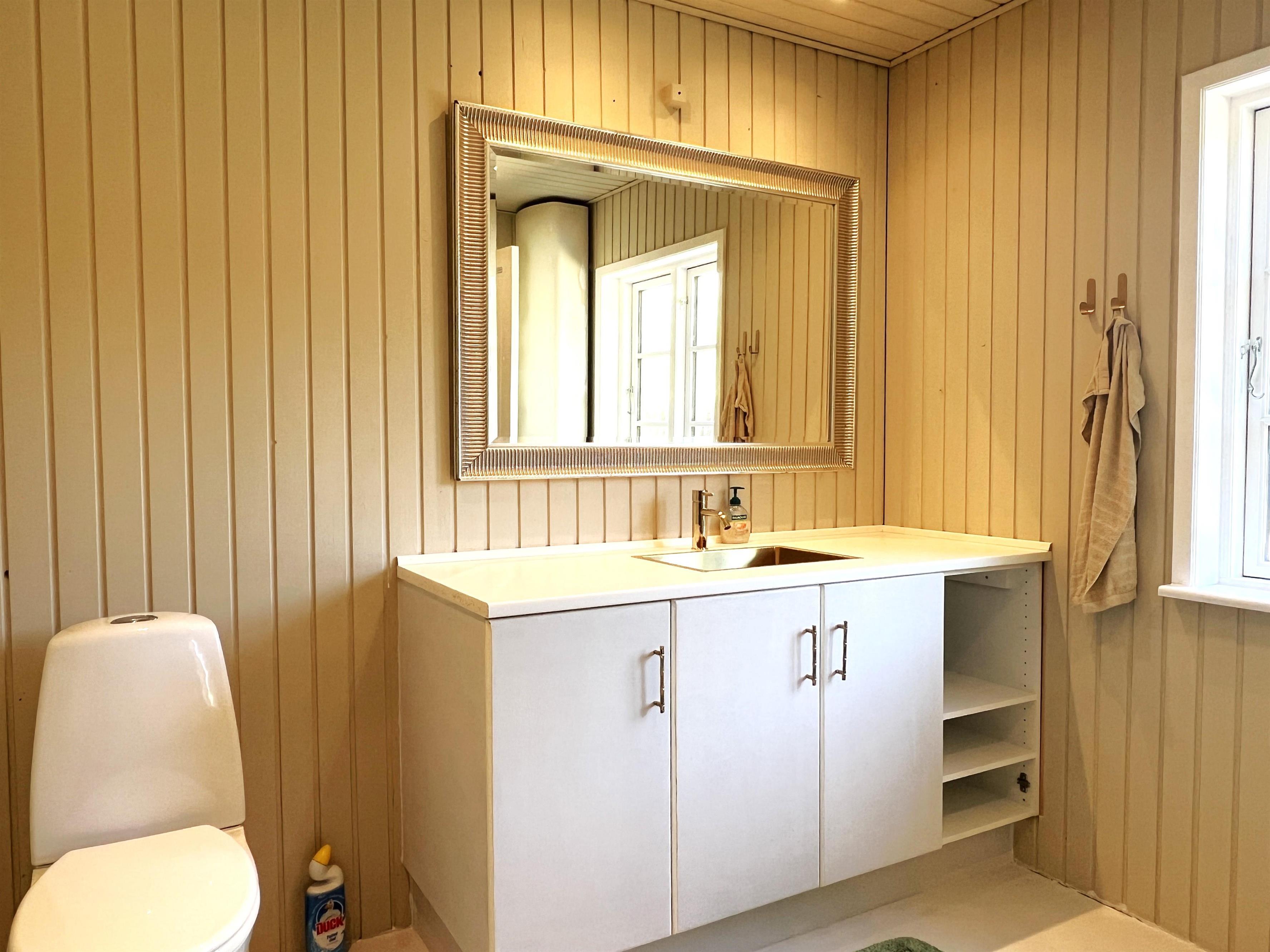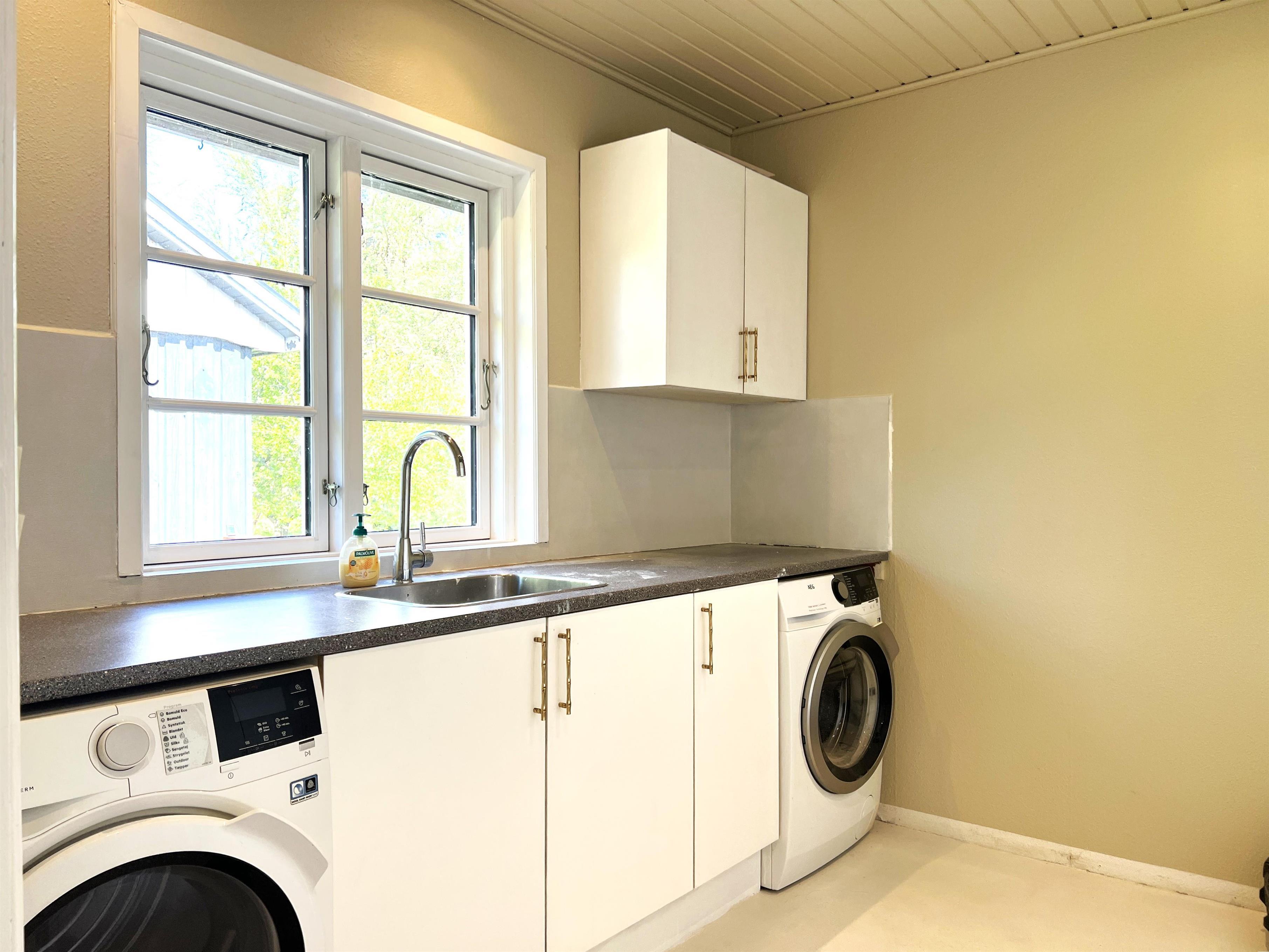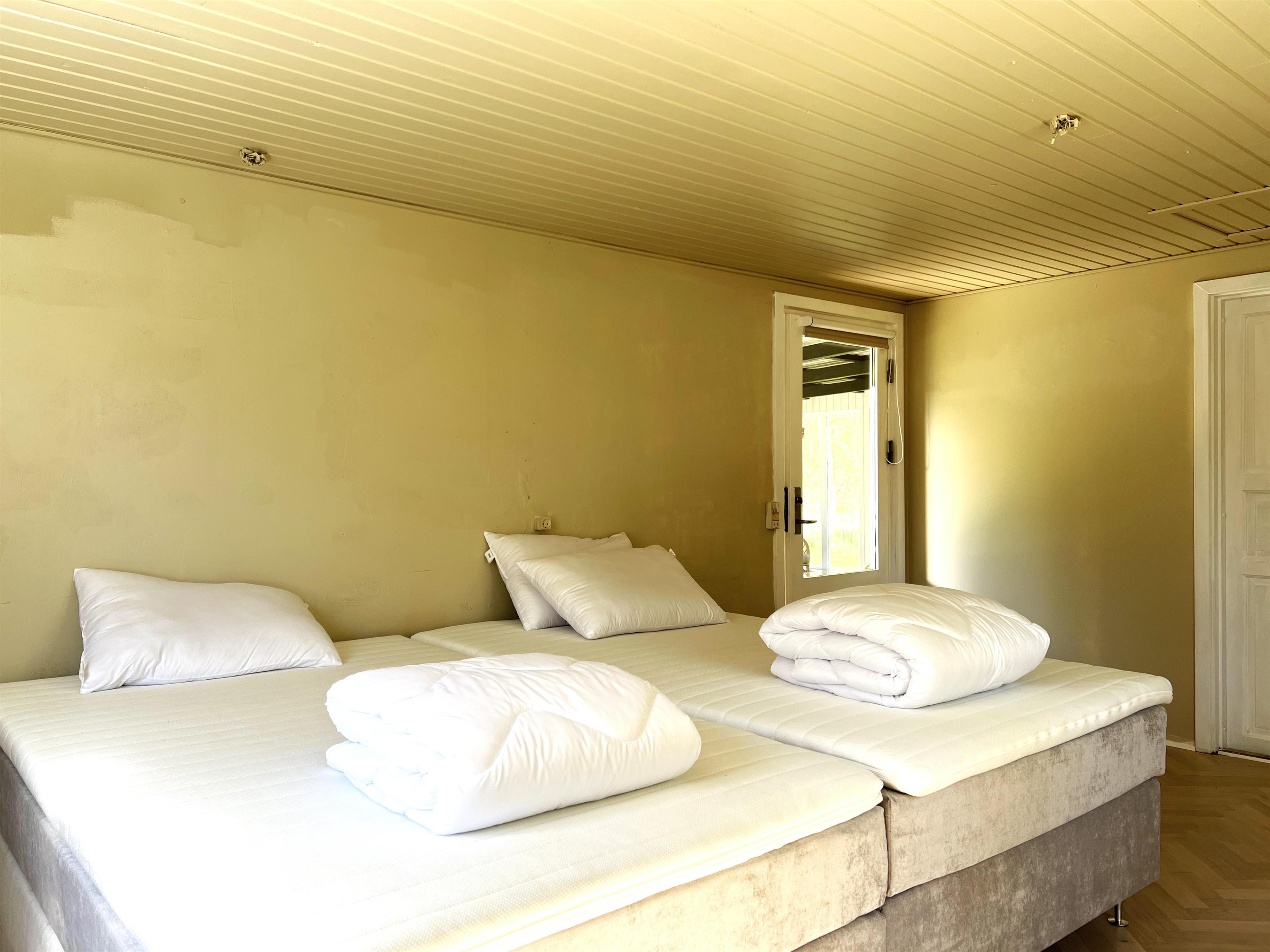 Der er desuden to gode, rummelige soveværelser med fine store, komfortable dobbeltsenge. Det tredje soveværelse med en mindre dobbeltseng egner sig måske bedst til en person, men to er også muligt. Fra et af de store soveværelser er der direkte adgang til fint badeværelse. Huset har hele to flotte badeværelser med brus og smagfuld indretning med bl.a. vandhaner og brusehoveder i messing. Der er yderligere bryggers med vaskemaskine og tørretumbler. I forlængelse af hovedhuset er der et fint anneks med endnu en stor dobbeltseng og en rigtig hyggelig havestue, der forlænger de lune sommeraftener.