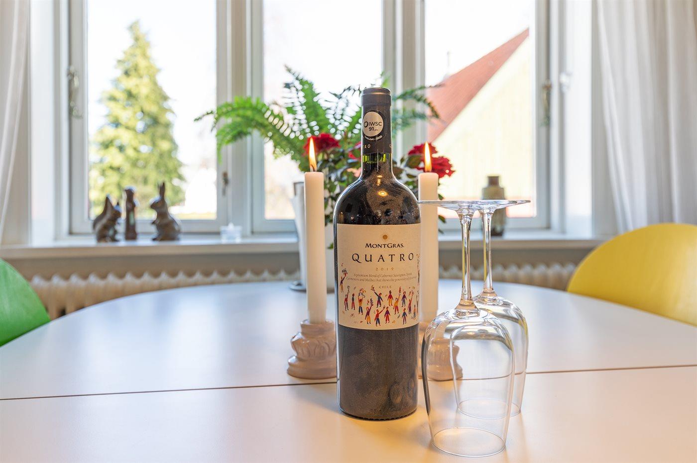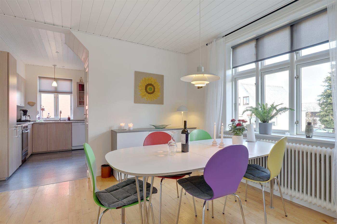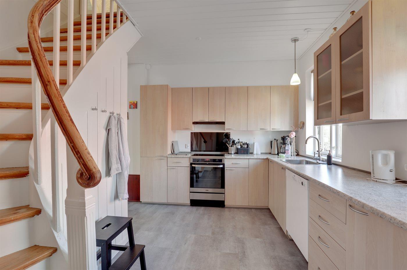 Køkkenet er udstyret med 1 køleskab. Der er 4 induktionskogeplader, varmluftovn, mikrobølgeovn samt opvaskemaskine Der er gulvvarme i køkkenet.