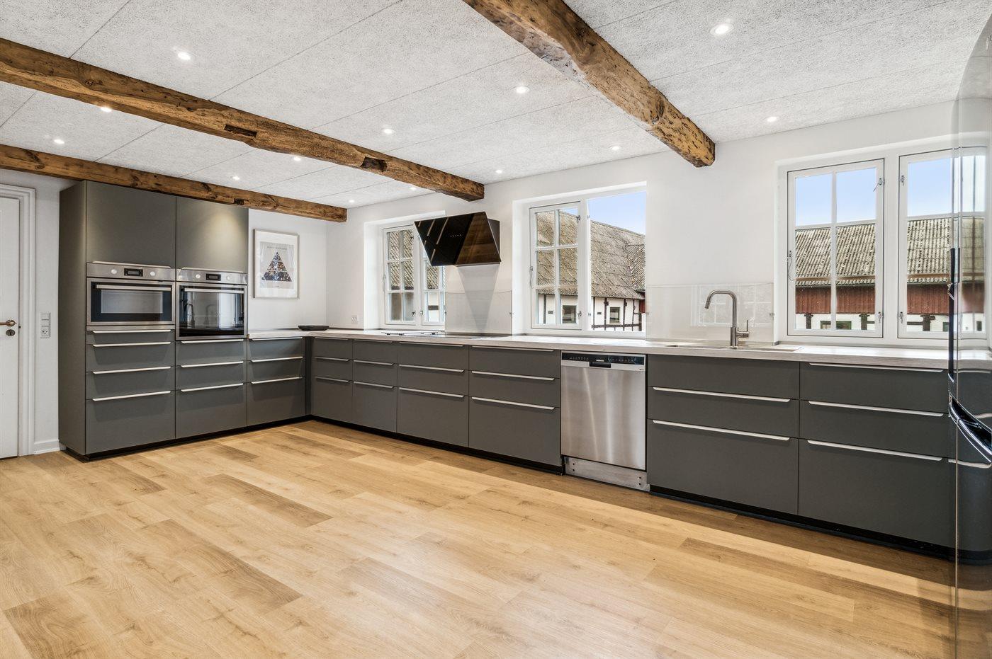 Køkkenet er udstyret med 1 køleskab. Der er 4 induktionskogeplader, varmluftovn, mikrobølgeovn samt opvaskemaskine.