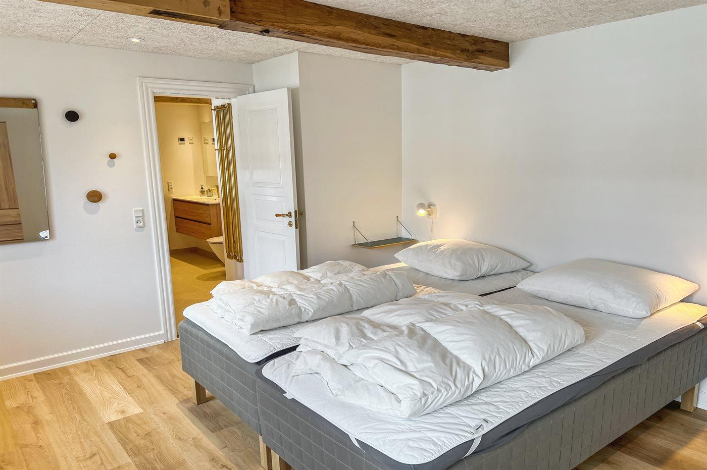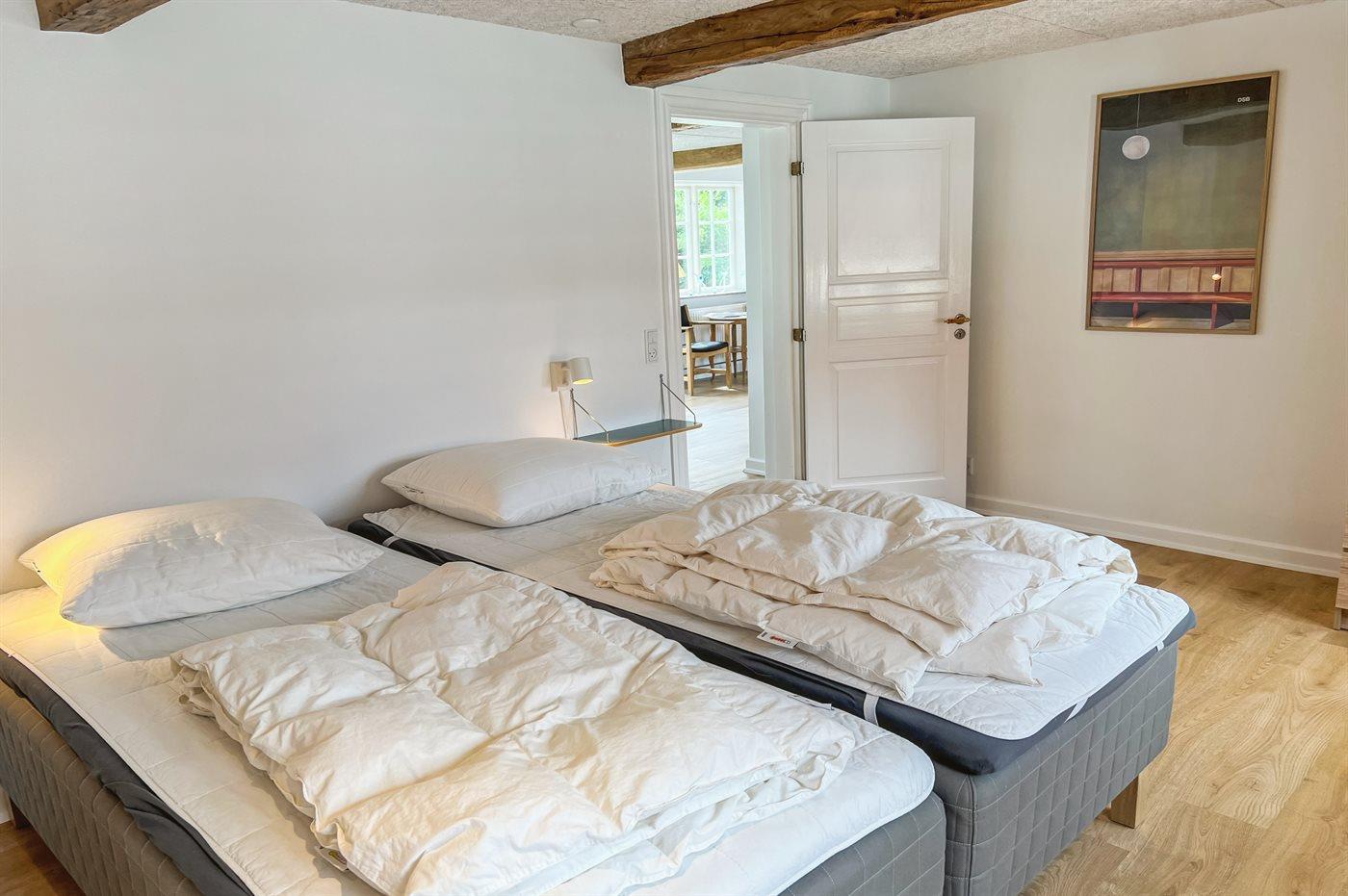 Der er i alt 6 soveværelser. Sovepladserne fordeler sig på: 6 sovepladser i dobbeltsenge. 4 sovepladser i enkeltsenge. Derudover er der 1 stk. barneseng.