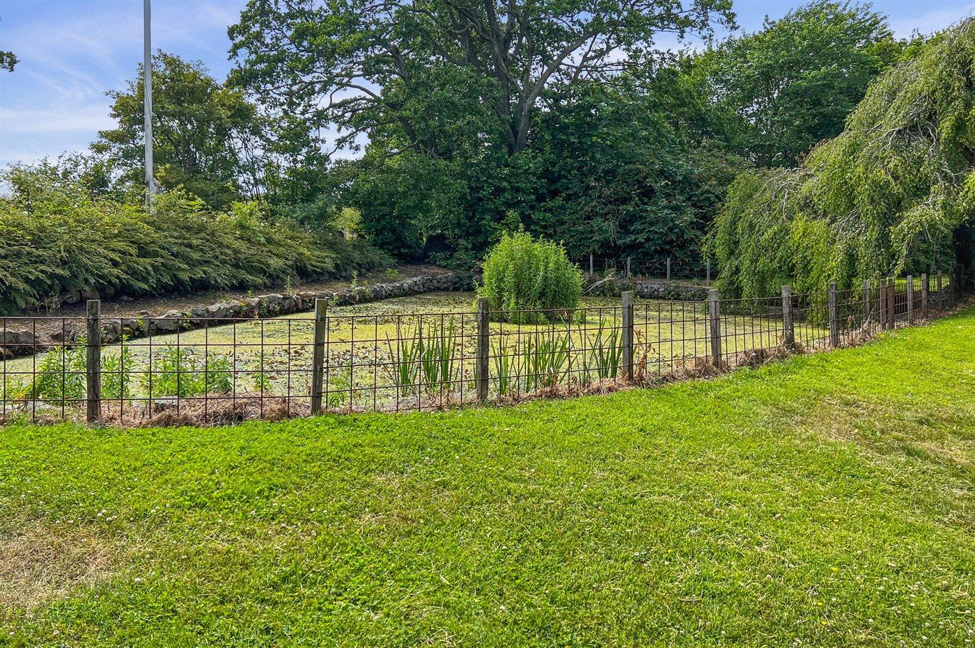 I godt vejr kan man benytte den fine hævede terrasse, så man har et herligt udsyn til den smukke have, der indrammer det hele. Den lille sø i haven er forsvarligt indhegnet, men man kan med held opleve både frøer, småfisk og selvfølgelig de fugle, som nok kan tage sådan en godbid indenbords.
