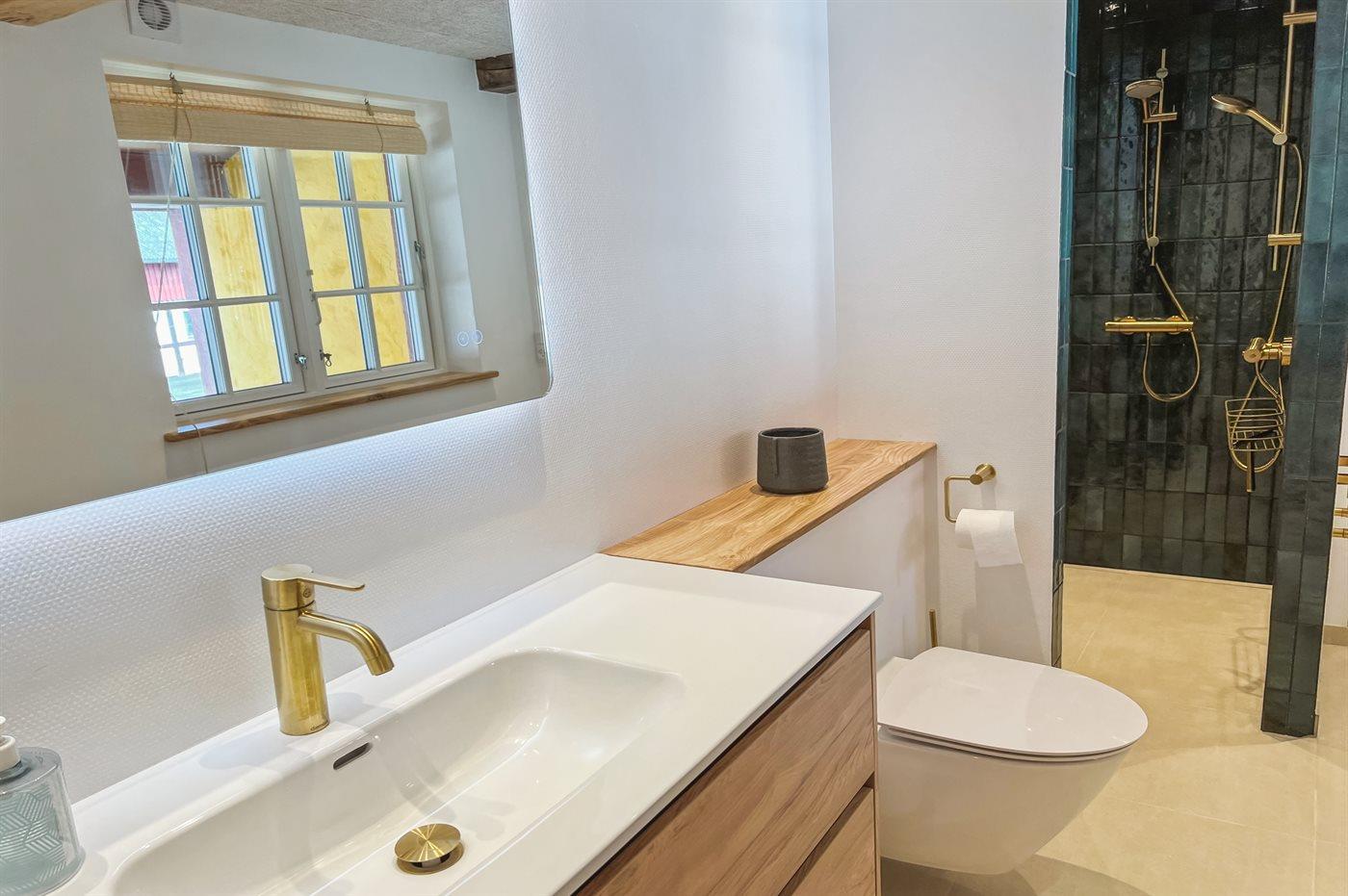 Nyt moderne badeværelse er lavet i 2025. Der er adgang fra masterbedroom og også fra fordelingsgang, så ingen forstyrres unødigt.