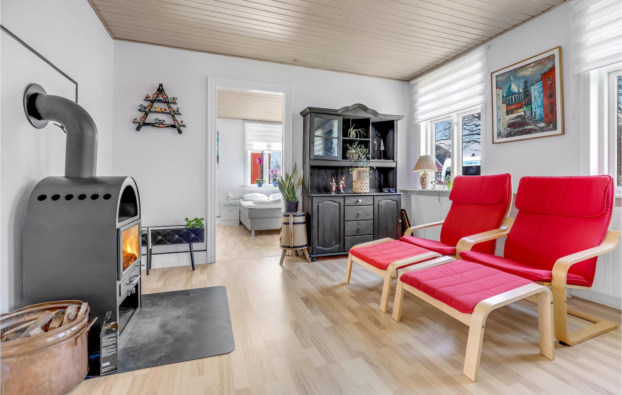 Glæd jer til et afslappende ferieophold i dette indbydende hus, der kombinerer moderne komfort med en rustik atmosfære. Her kan I se frem til nogle rolige dage med hjemmehygge og sightseeing på øen. I huset kan I hyggesnakke, spille kort- og brætspil, se film og serier og tilberede lækre feriemåltider. Der hører også en indhegnet have til huset, hvor børnene kan løbe rundt og lege. Helårsisolation i kombination med brændeovn og gulvvarme på badeværelset gør også huset super velegnet til ferier uden for sommersæsonen.