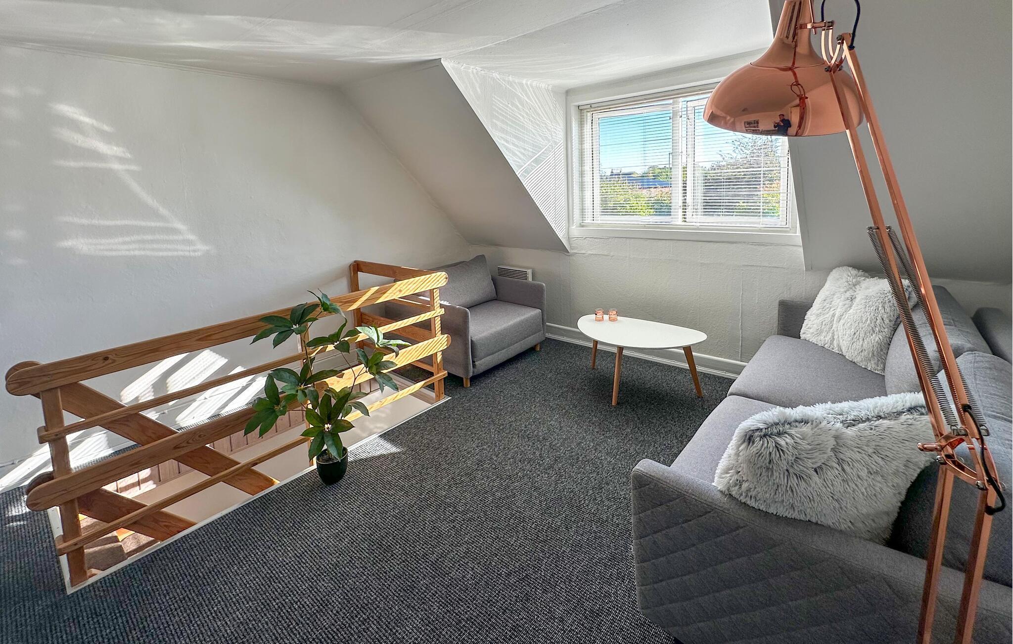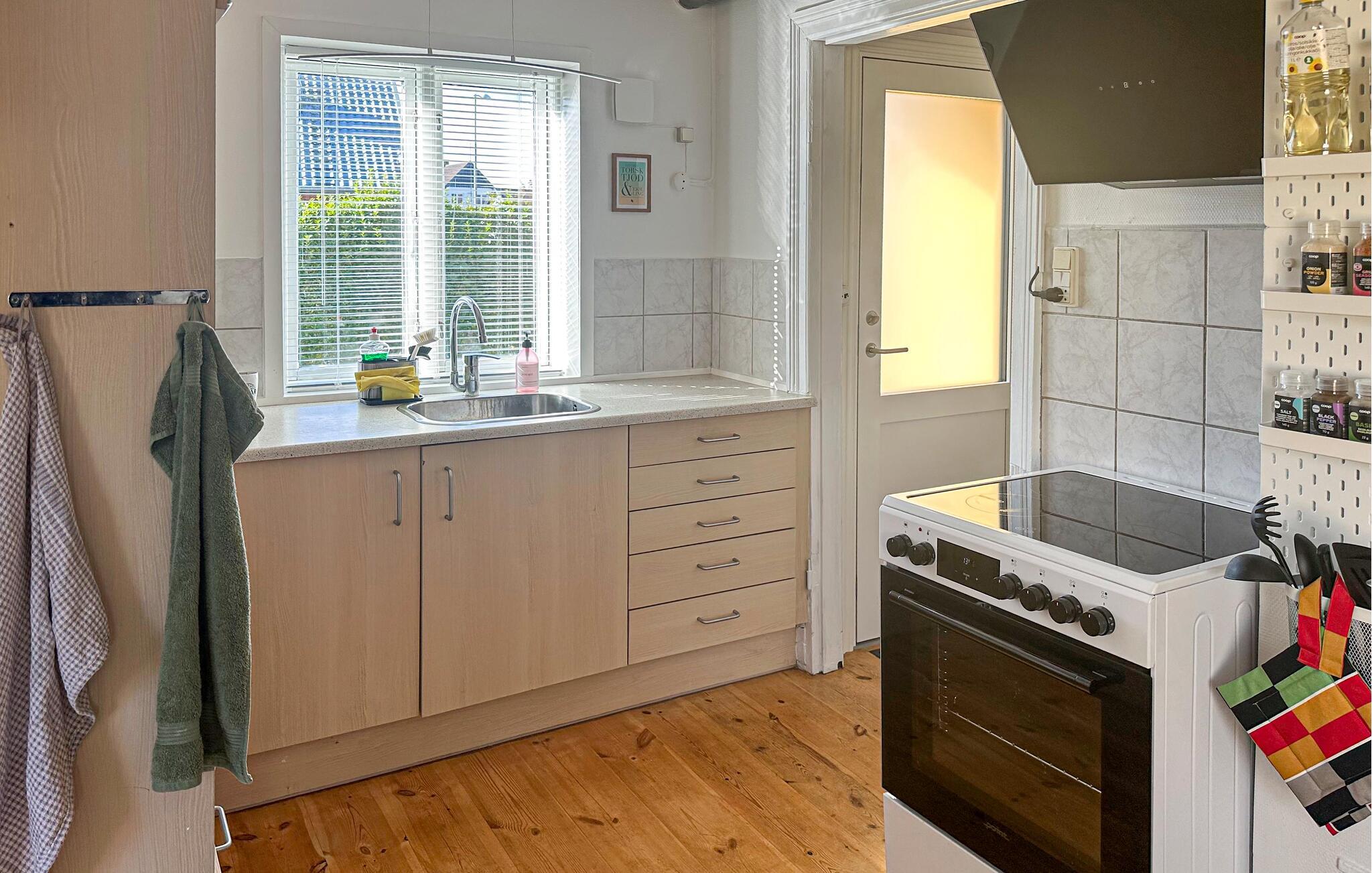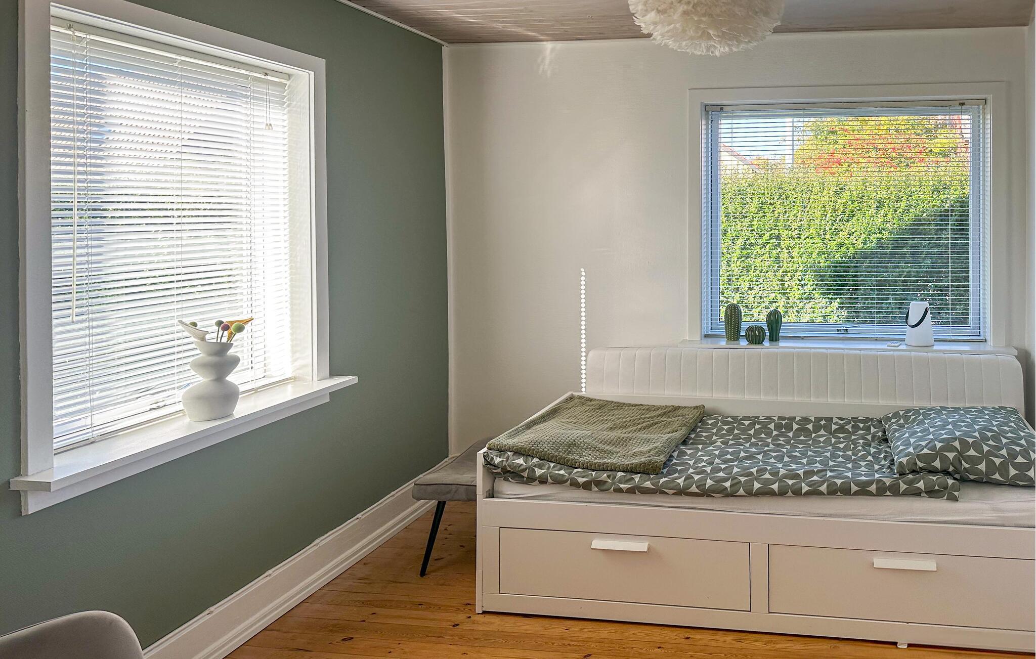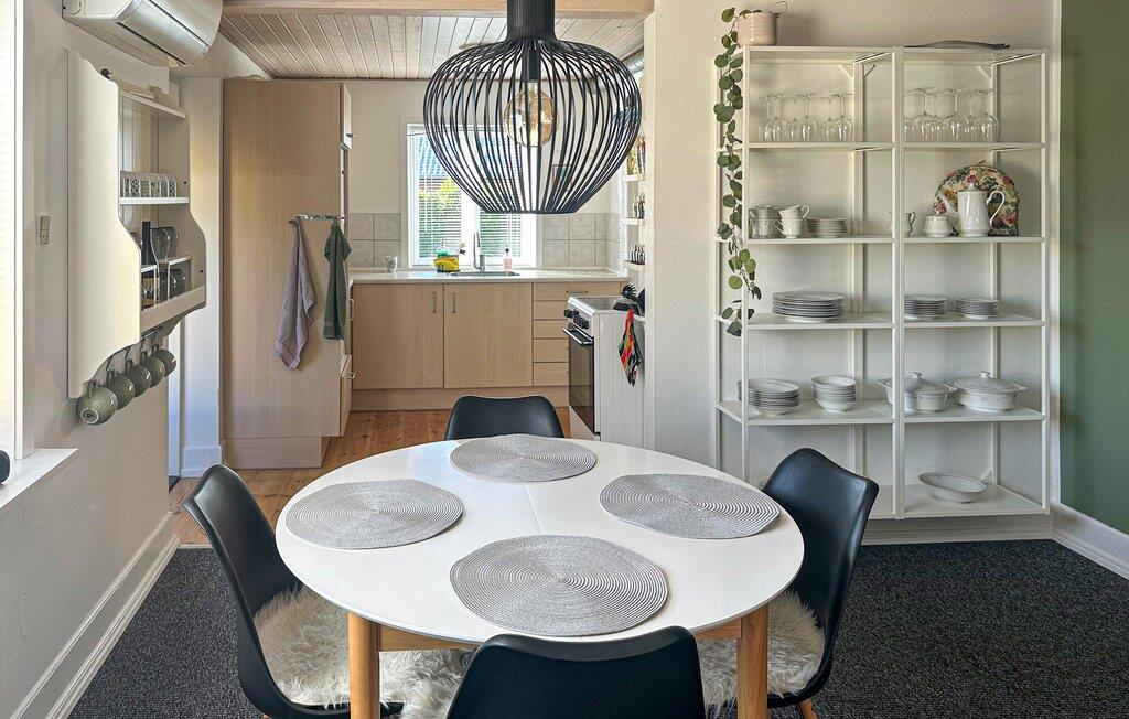 Bliv budt velkommen af ??de lyse og hyggelige møbler. Slap af i den hyggelige stue med en komfortabel sofa, TV og læsehjørne. Tilbered jeres måltider i det praktiske køkken, som kan prale af rigelig arbejdsplads og masser af naturligt lys. Nyd jeres måltid ved det runde spisebord i det tilstødende rum, som med sine åbne hylder og smagfulde detaljer skaber en særlig indbydende atmosfære. Den lille opholdsstue ovenpå inviterer jer også til rolige stunder – sæt jer her med en god bog eller en god kop kaffe.