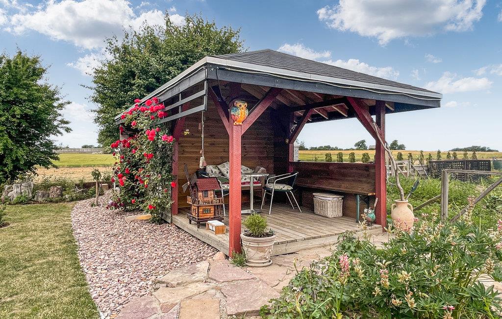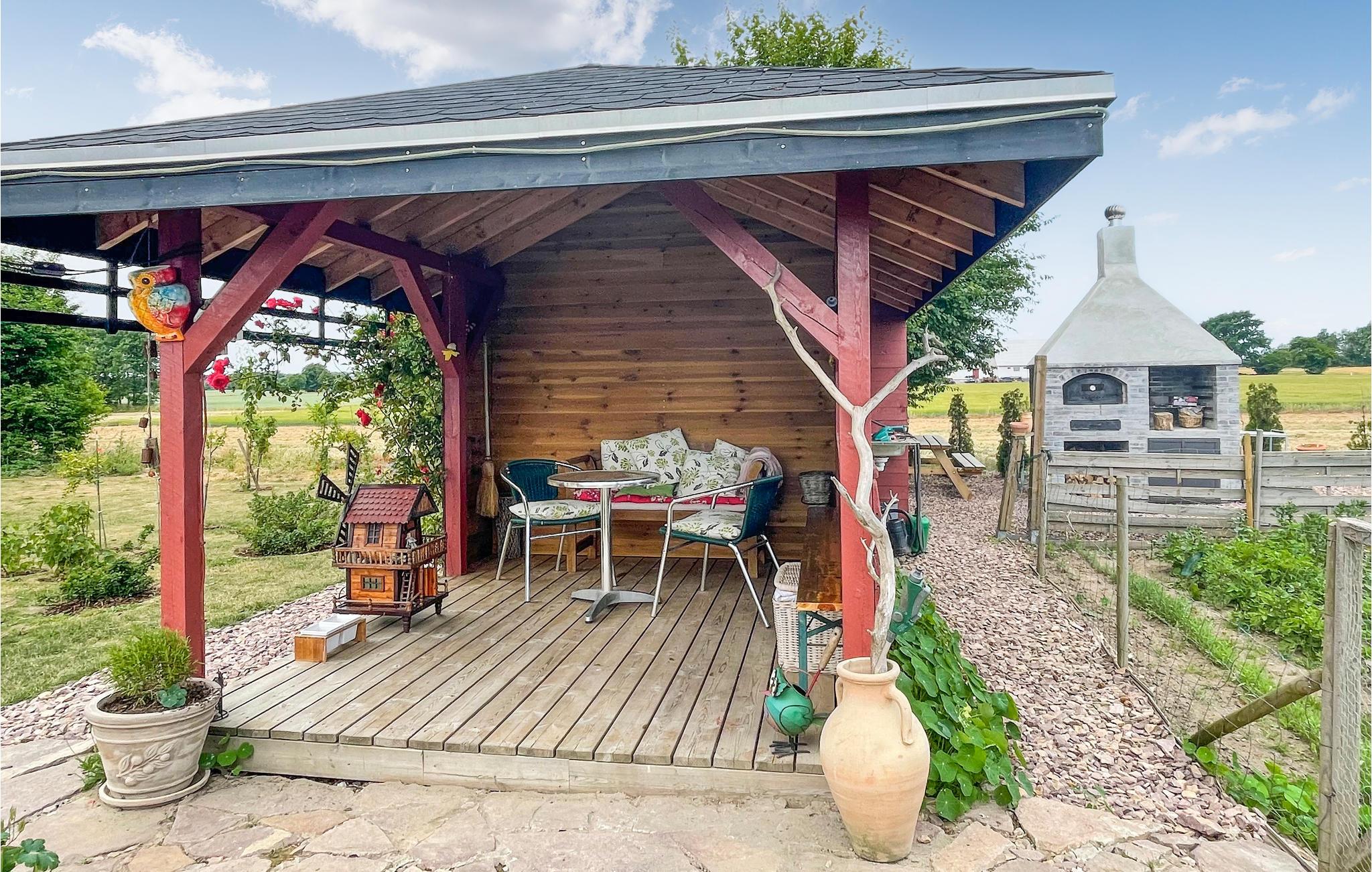 Foruden et fuldt udstyret køkken, kan I tilberede maden udendørs, hvor der både er fælles grill og pizzaovn. Når menuen står klar, kan I sætte jer til rette på den overdækkede terrasse og nyde udsigten til det rolige område.