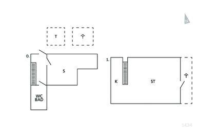 Badeværelse (nr. 1) - WC. Varmt og koldt vand. Bruser