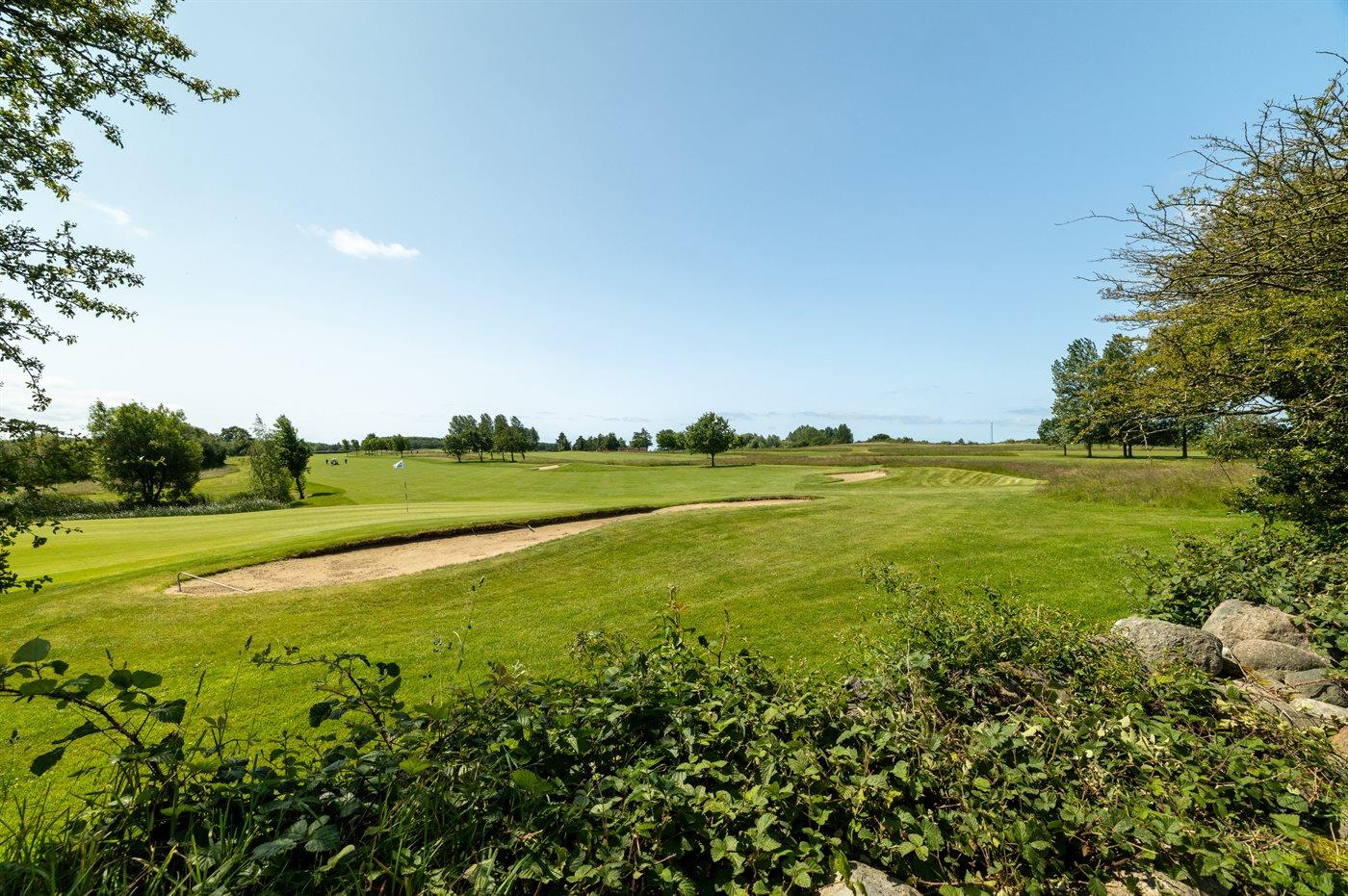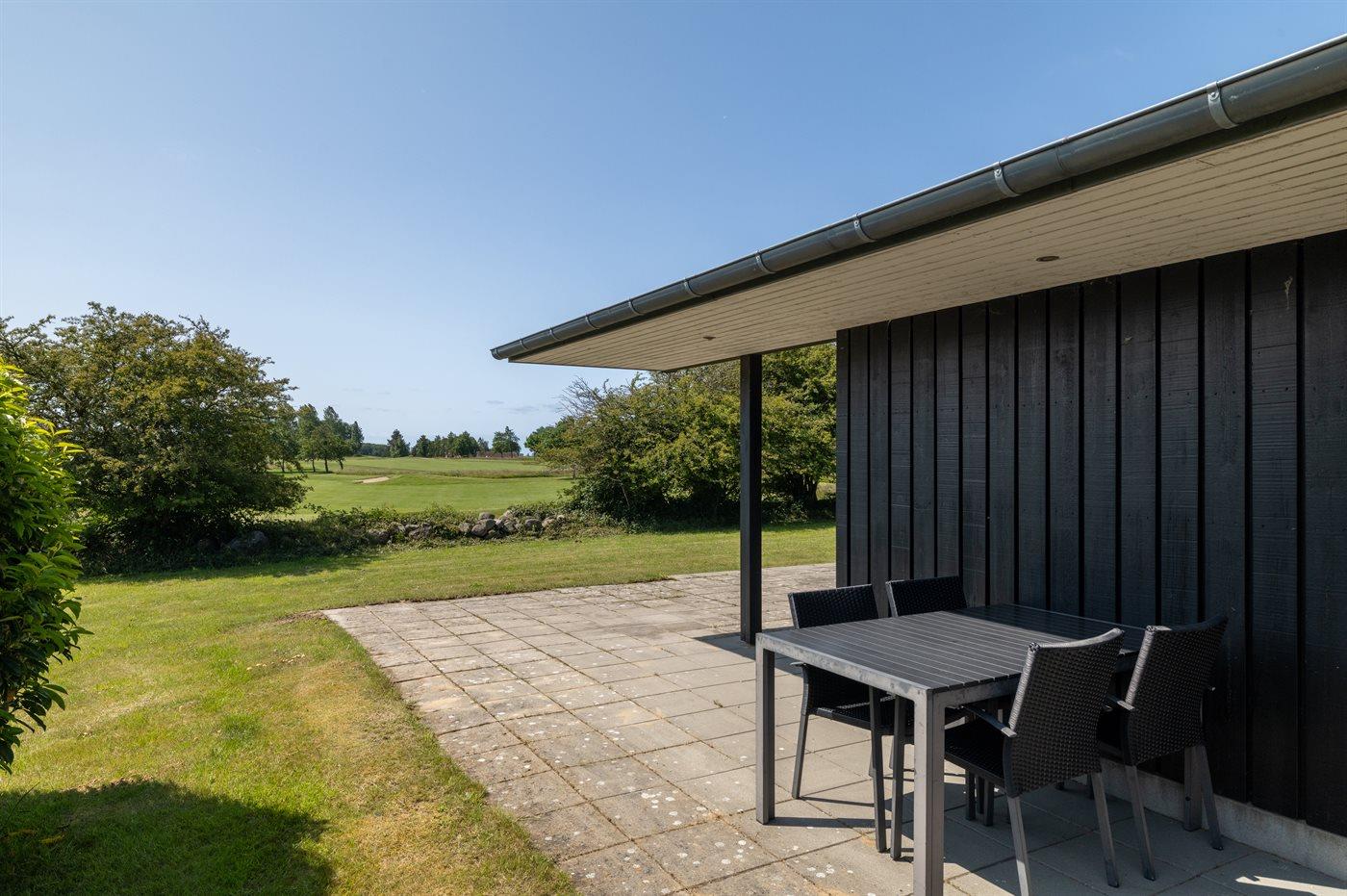 Fra huset og terrassen er der udsigt ud over området og Langelands Golfklubs 18-hullers golfbane. Er man golf-interesseret, så findes der næppe et sommerhus med en bedre beliggenhed!