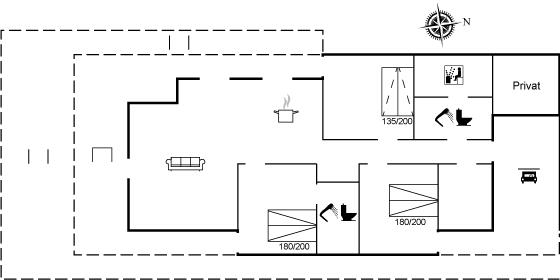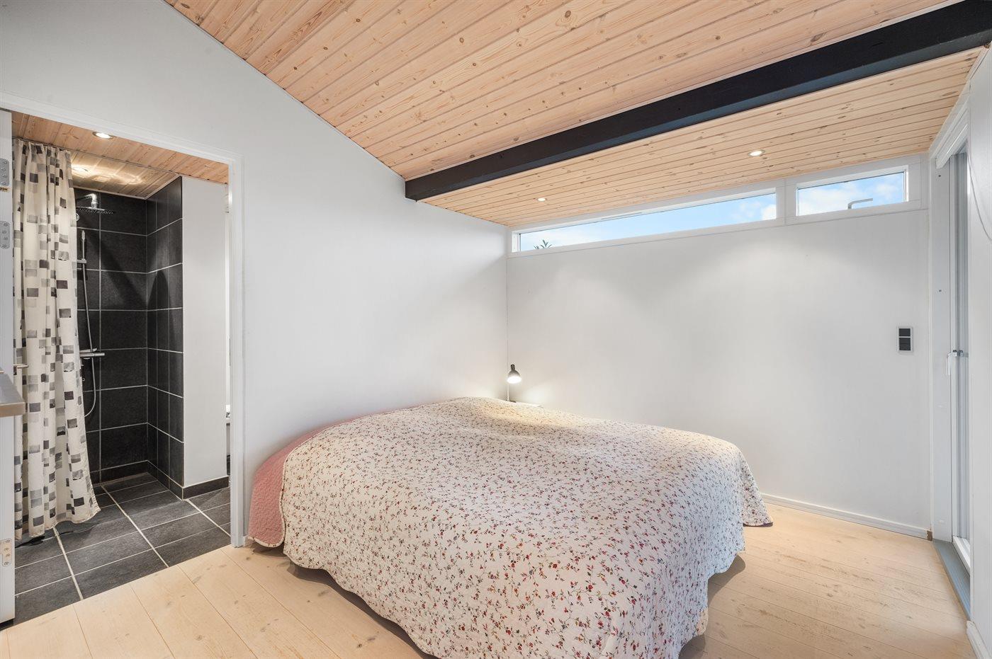 Der er i alt 3 soveværelser. Sovepladserne fordeler sig på: 4 sovepladser i dobbeltsenge. 2 sovepladser i sovesofa (dobbelt). 2 sovepladser på madrasser. 2 af disse sovepladser befinder sig på husets hems. Derudover er der 1 stk. barneseng.
