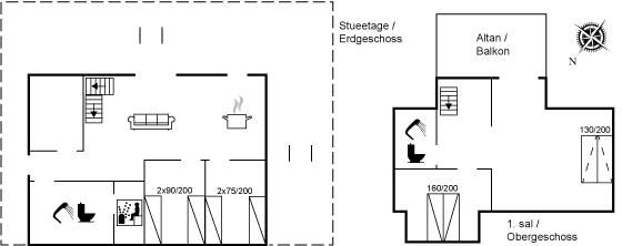 Der er i alt 3 soveværelser. Sovepladserne fordeler sig på: 2 sovepladser i dobbeltseng. 4 sovepladser i enkeltsenge. 2 sovepladser i sovesofa (dobbelt). 2 af disse sovepladser befinder sig i stuen. Derudover er der 1 stk. barneseng.