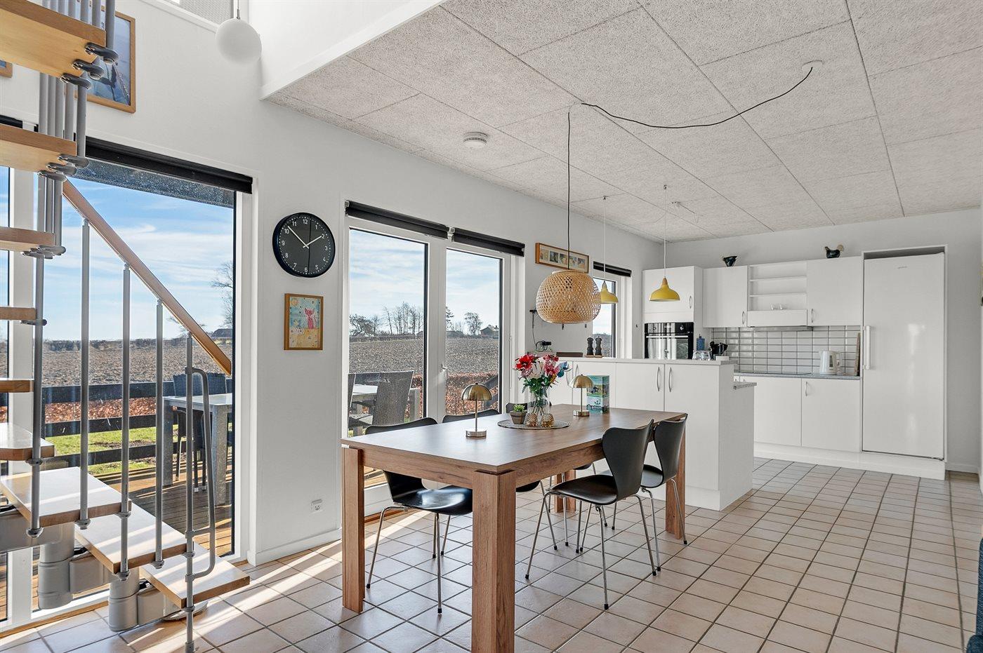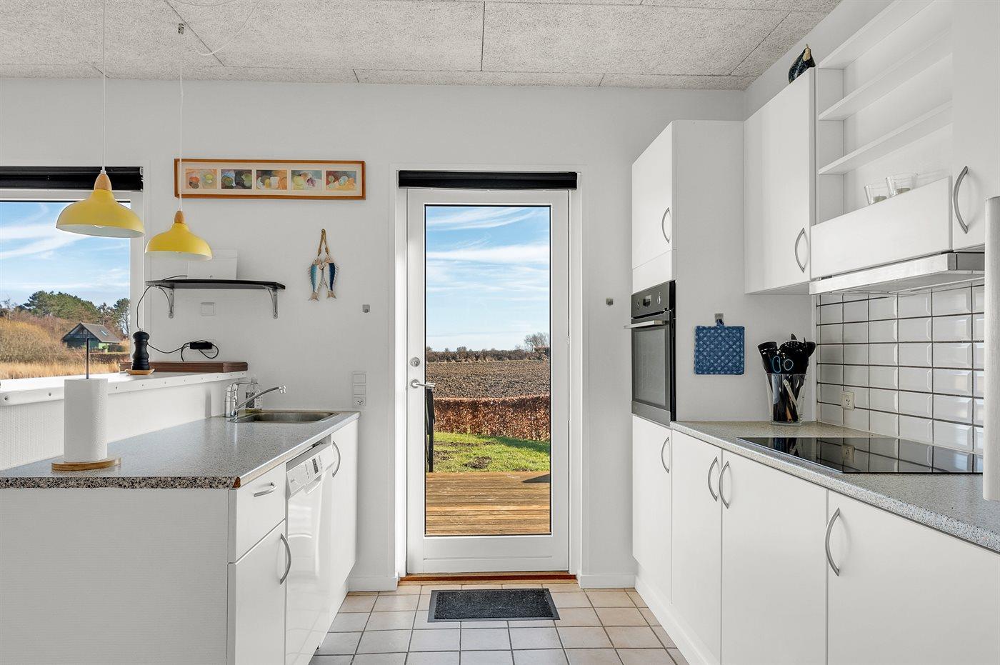 Køkkenet er udstyret med 1 køleskab. Der er 3 induktionskogeplader, varmluftovn, mikrobølgeovn samt opvaskemaskine.