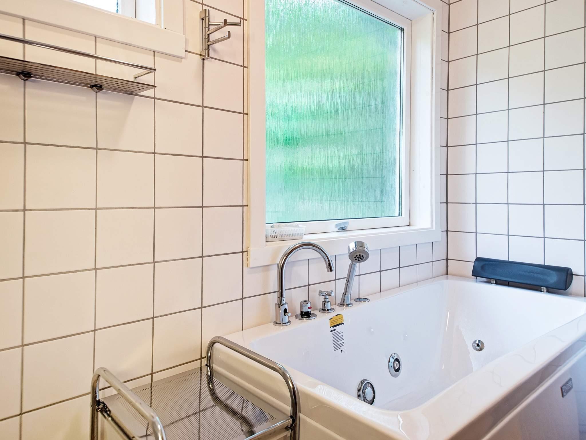 Hyggeligt sommerhus nær strand med sauna, spabad og stor overdækket terrasse til afslapning og leg.
