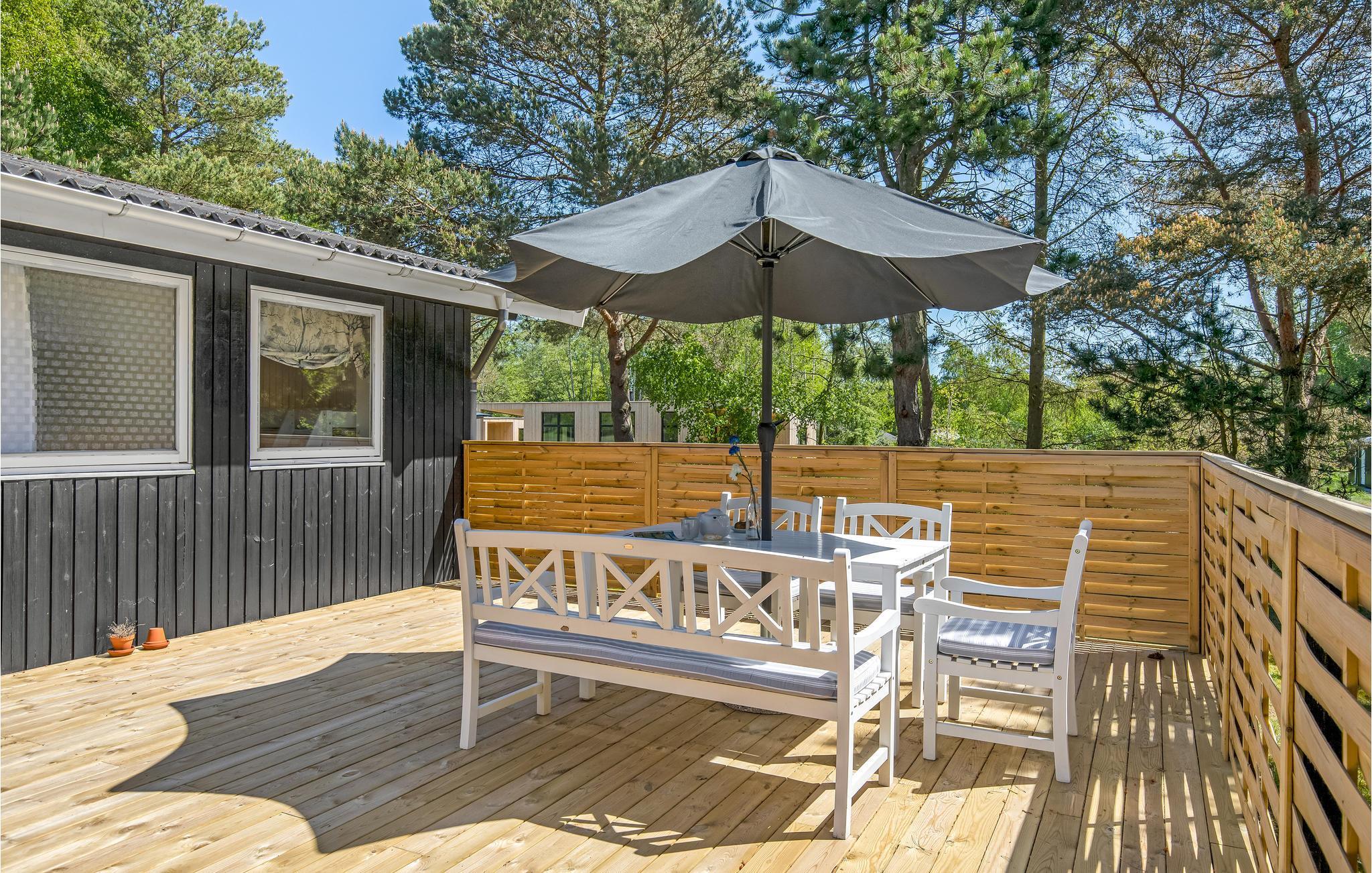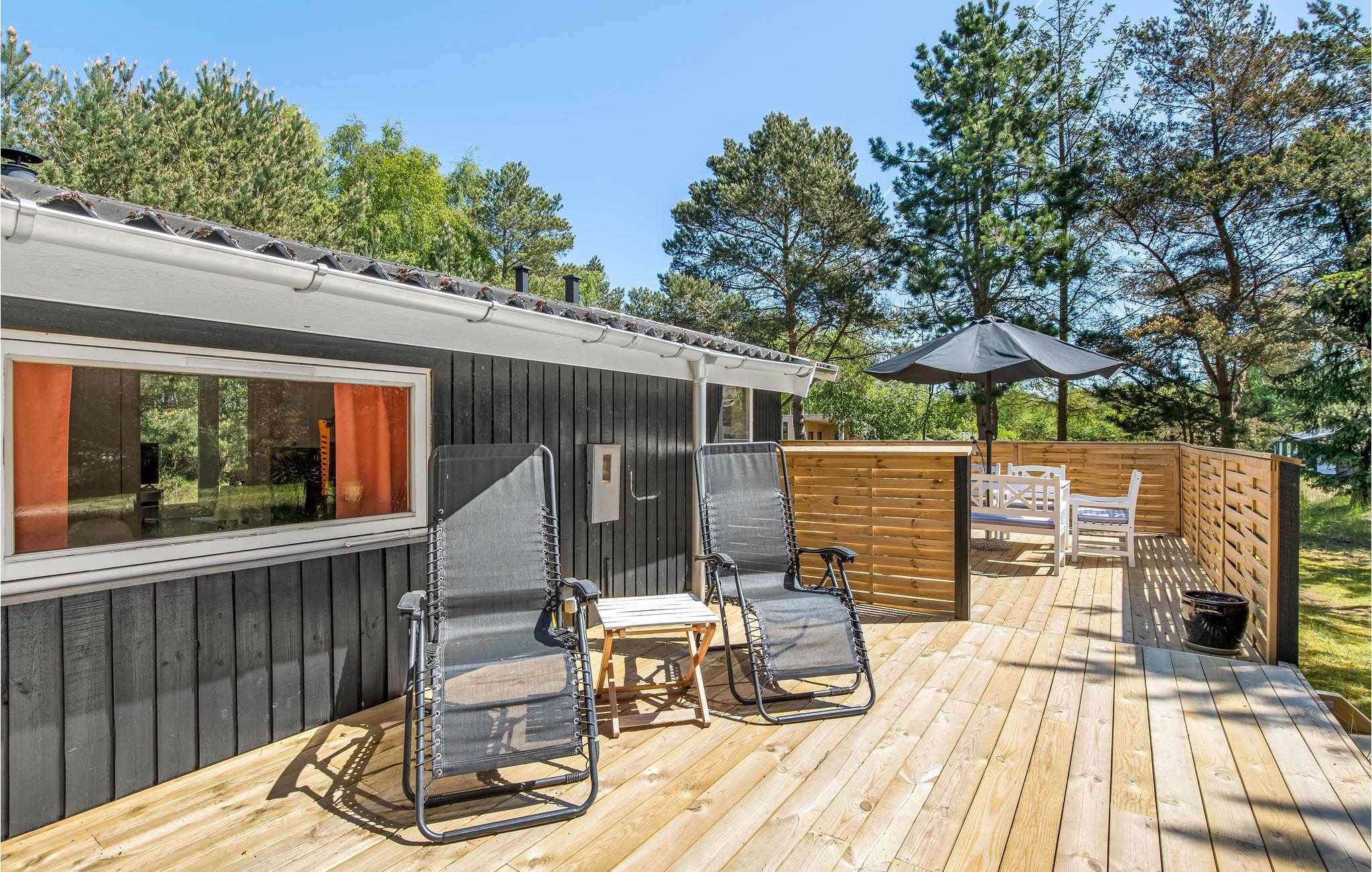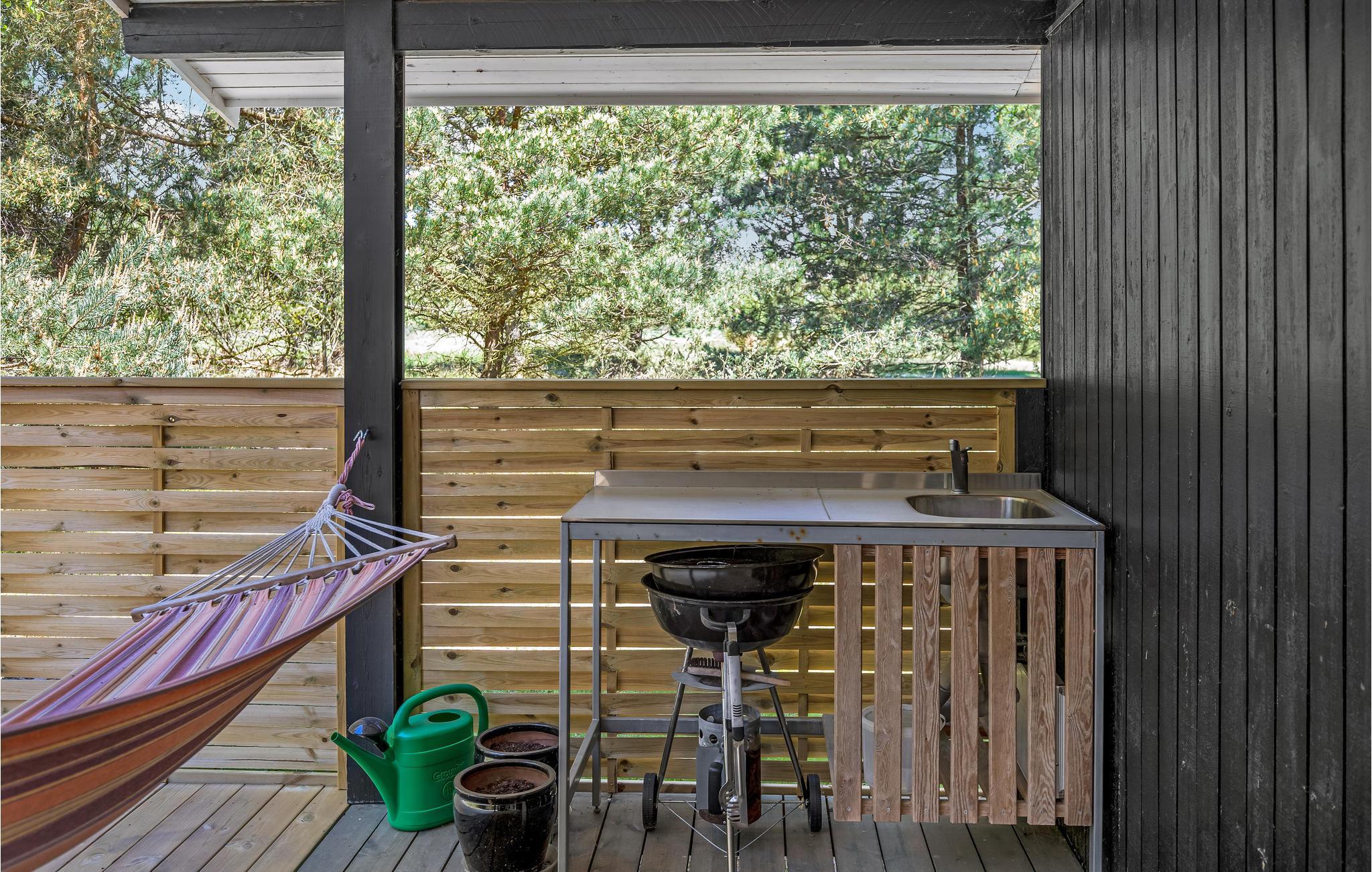 Huset ligger på en dejlig og veltrimmet naturgrund med god plads til leg og feriehygge. Udenfor finder I også en dejlig og ugeneret træterrasse, hvor I kan sidde og slappe af eller spise jeres måltider på de lange, lune sommeraftener.