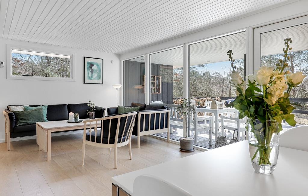 Flot og nydeligt moderniseret træsommerhus beliggende attraktivt på dejlig naturgrund og nær til een af Bornholms bedste sandstrande. Sommerhuset fremtræder overalt lyst og indbydende, og byder på en skøn og velindrettet kombineret spise- og opholdsstue med nydelige og komfortable møbler og et dejligt stort 55-tommers fladskærms-tv. Her er naturligvis også gratis internet, og en brændeovn til at skabe en hyggelig og rar stemning. Flot lysindfald fra de store vinduespartier mod syd, og I har direkte udgang fra stuen til terrasseområdet, hvor både den overdækkede træterrase og den åbne terrasse byder på flotte havemøbler og mulighed for at nyde ferieophold i afslappende og rolige omgivelser. Flotte spots gør det muligt at sidde ude på terrassen om aftenen, hvor I bare kan hygge, tilberede feriemåltiderne på husets gasgrill, og bare nyde hinandens selskab. Pænt åbent køkken, hvor feriemåltiderne nemt kan tilberedes , og med udgang til terrasse mod nordvest. Nydeligt badeværelse og 3 hyggelige soveværelser. Fra dette flot moderniserede sommerhus beliggende i et roligt og børnevenligt område, har I ikke langt til smuk natur og en dejlig sandstrand med klitter. Gourmetrestauranten Kadeau ligger også lige i nærheden af dette skønne og velholdte sommerhus. Husets høje komfort og mange moderne faciliteter gør det velegnet til ferieophold uanset årstid.