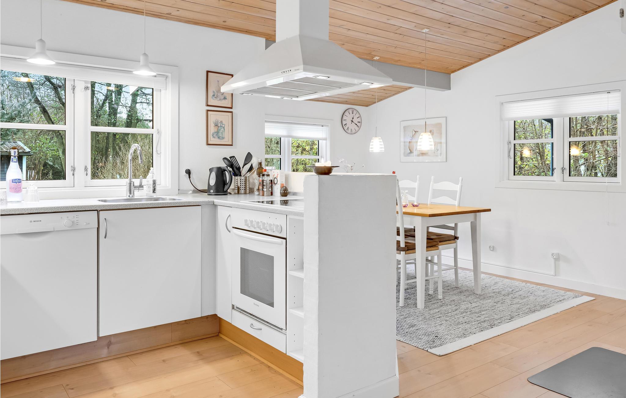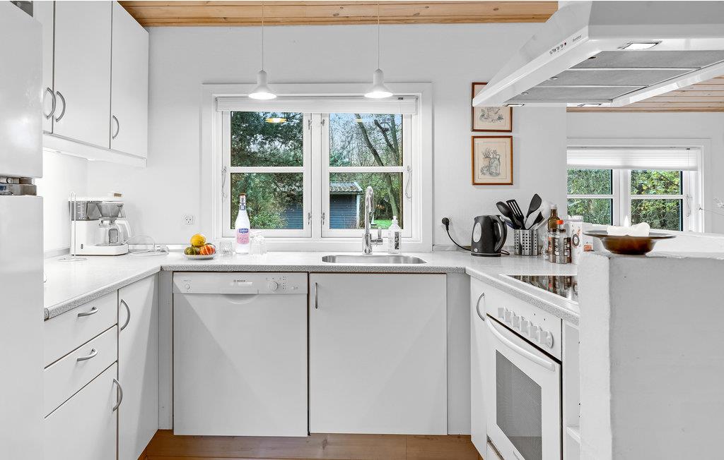 Velkommen til dette attraktive sommerhus, hvor I kan tilbringe mange hyggelige stunder sammen i opholdsstuen med brændeovn, TV/DVD og radio/CD og tilberede dejlige feriemåltider i det veludstyrede, åbne køkken med spiseplads. På husets badeværelse er der en sauna til afslapning efter en aktiv feriedag.