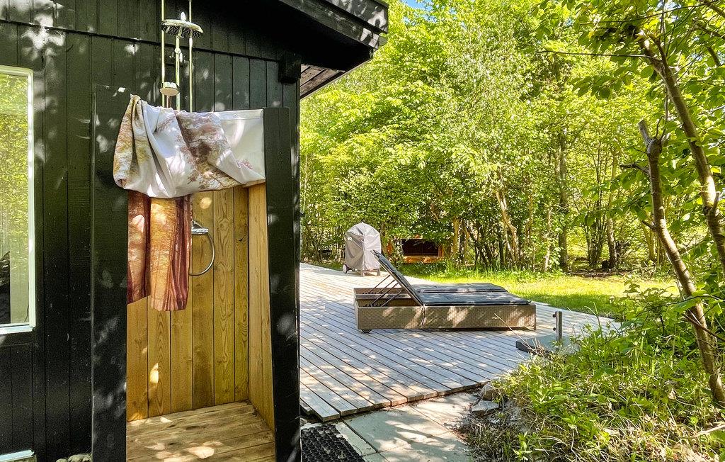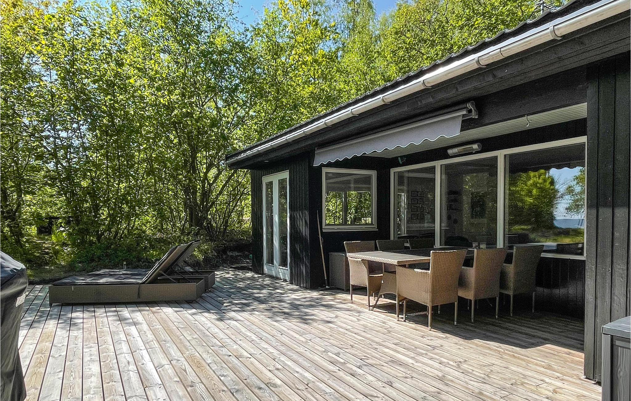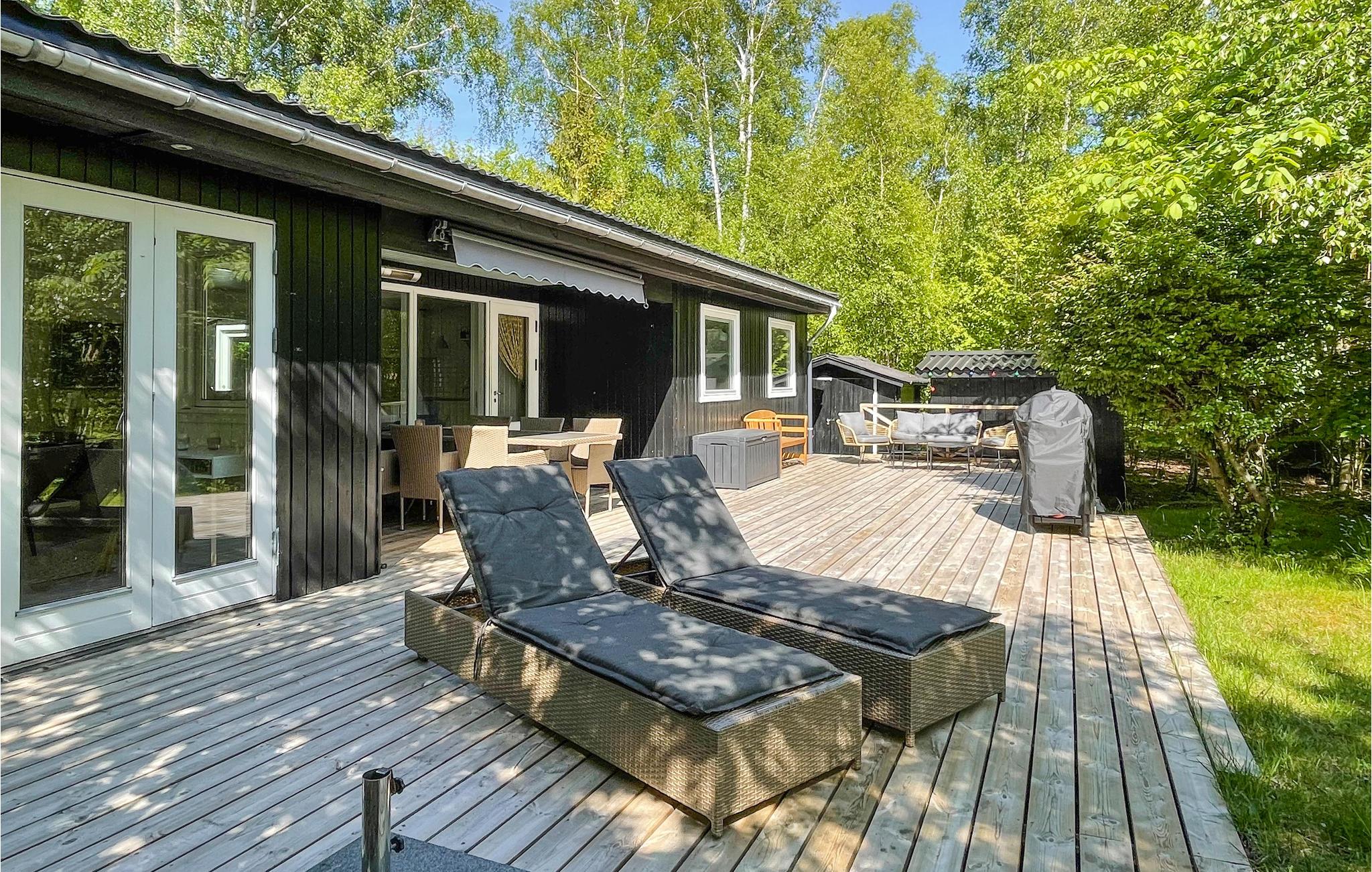 Den sydvendte terrasse ligger i læ og er delvist overdækket, så her har I et godt sted til udendørs spisning og mange solskinstimer i de komfortable liggestole. Nyd den fredelige atmosfære blandt skyggefulde træer og lad børnene legende udforske naturen og nyde de rustikke legemuligheder. Gå barfodet til stranden og tænd op i grillen, inden I dækker op til en stemningsfuld aften under åben himmel.