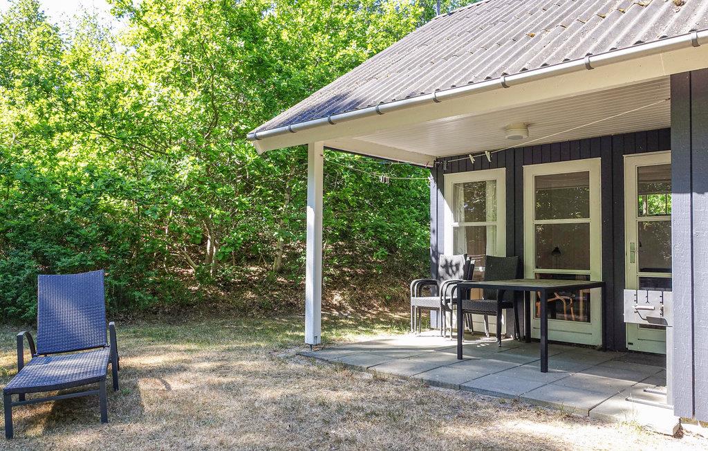Fra stuen er der udgang til en overdækket terrasse med en spiseplads og en grill, der lægger op til flere hyggelige grillaftener. I har også et par liggestole til rådighed, så I kan solbade på grunden.