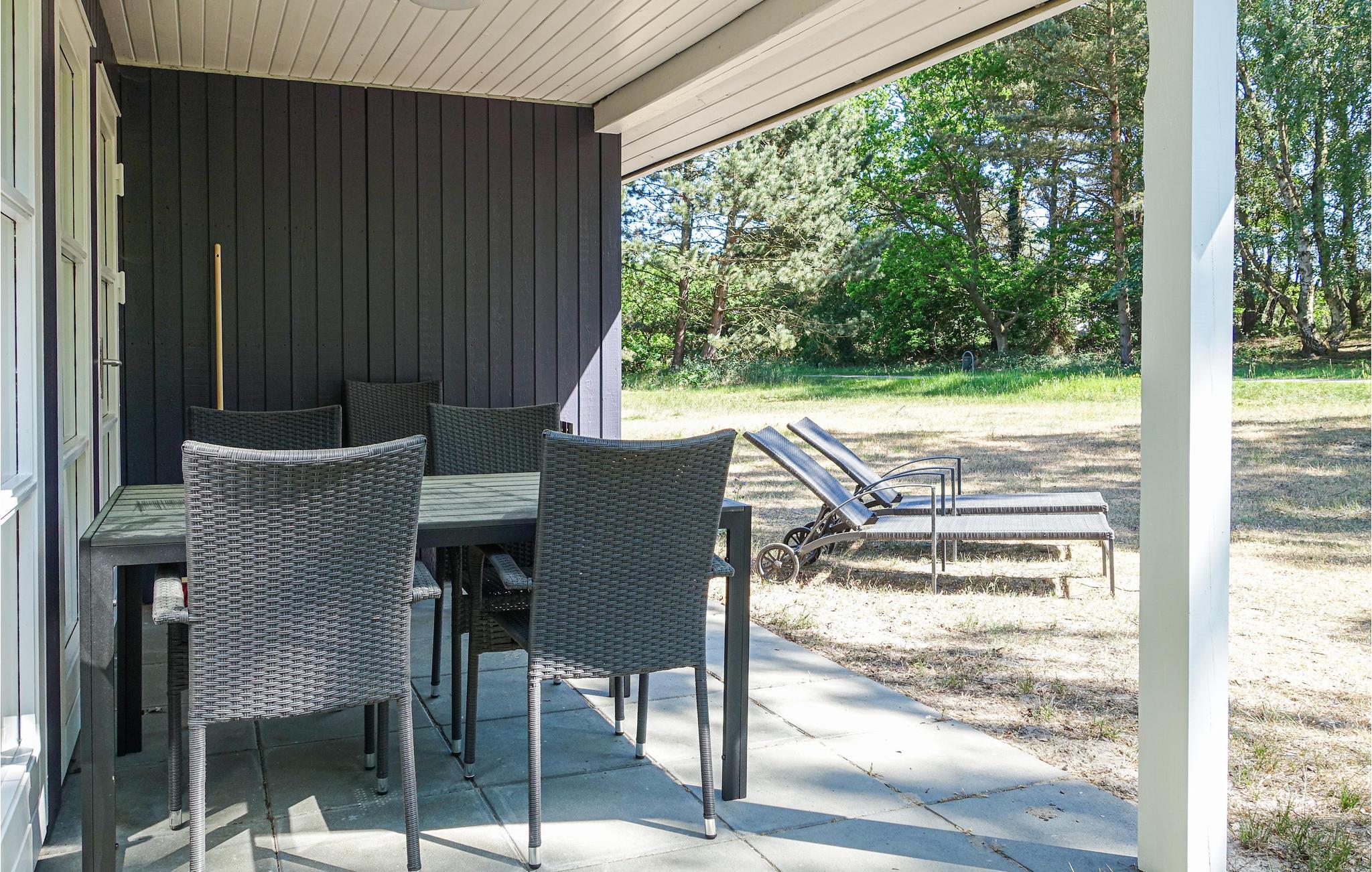 Fra stuen er der udgang til en overdækket terrasse med en spiseplads og en grill, der lægger op til flere hyggelige grillaftener. I har også et par liggestole til rådighed, så I kan solbade på grunden.