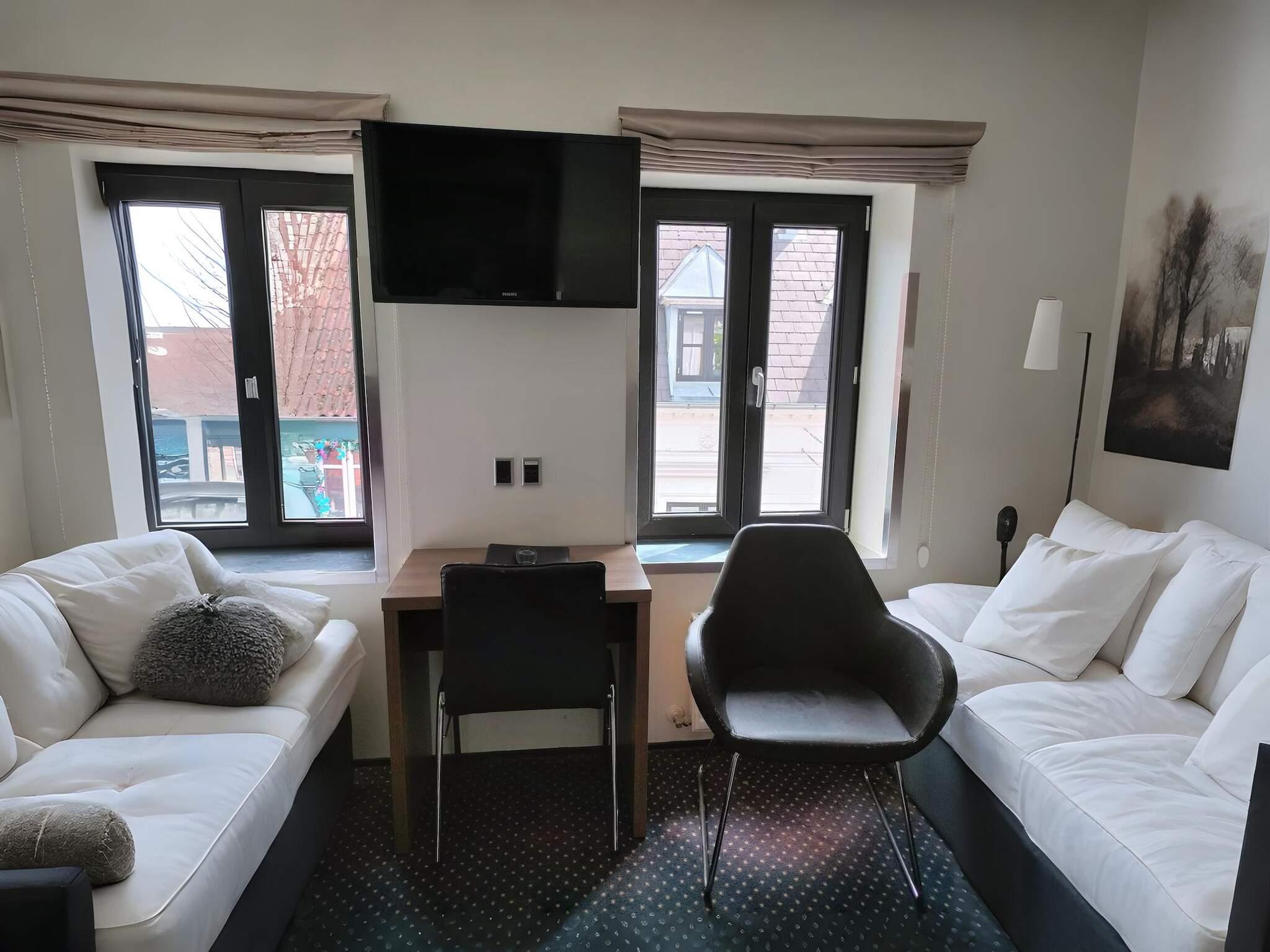 På Hotel Jomfru Ane er alle værelser designet med komfort og bekvemmelighed for øje. Hvert værelse kombinerer minimalistisk nordisk indretning med blød belysning og moderne faciliteter, hvilket skaber et roligt og hyggeligt tilflugtssted fra byens travlhed udenfor.