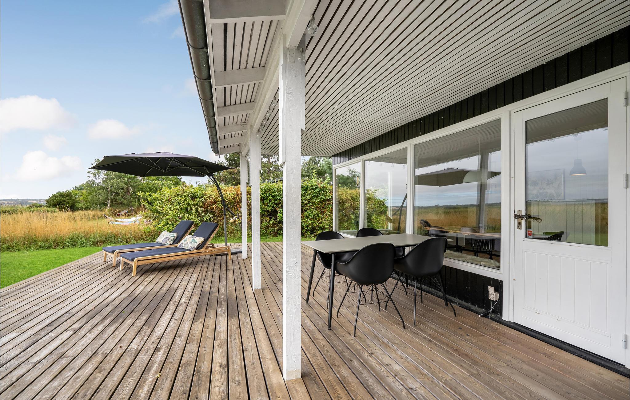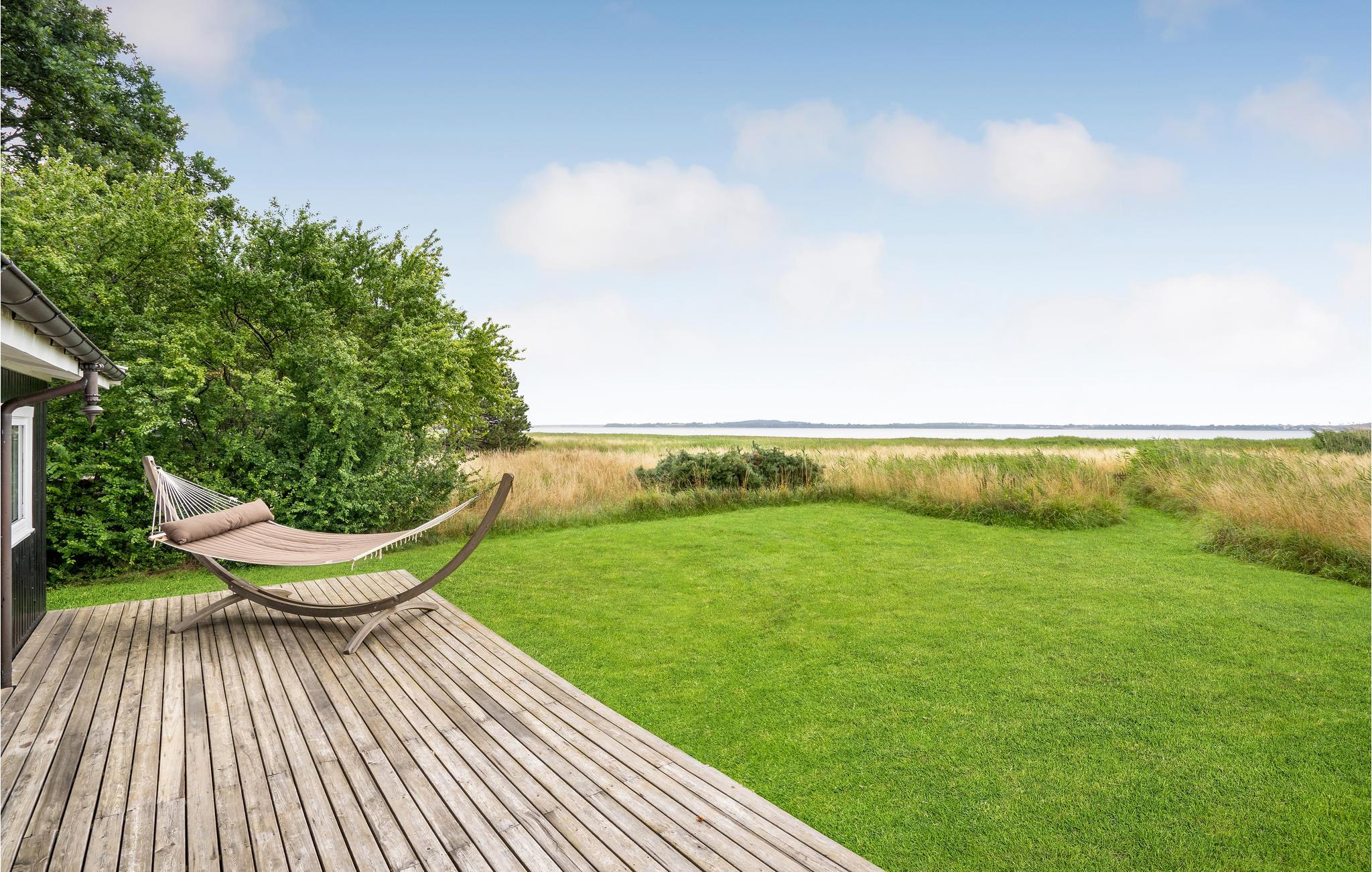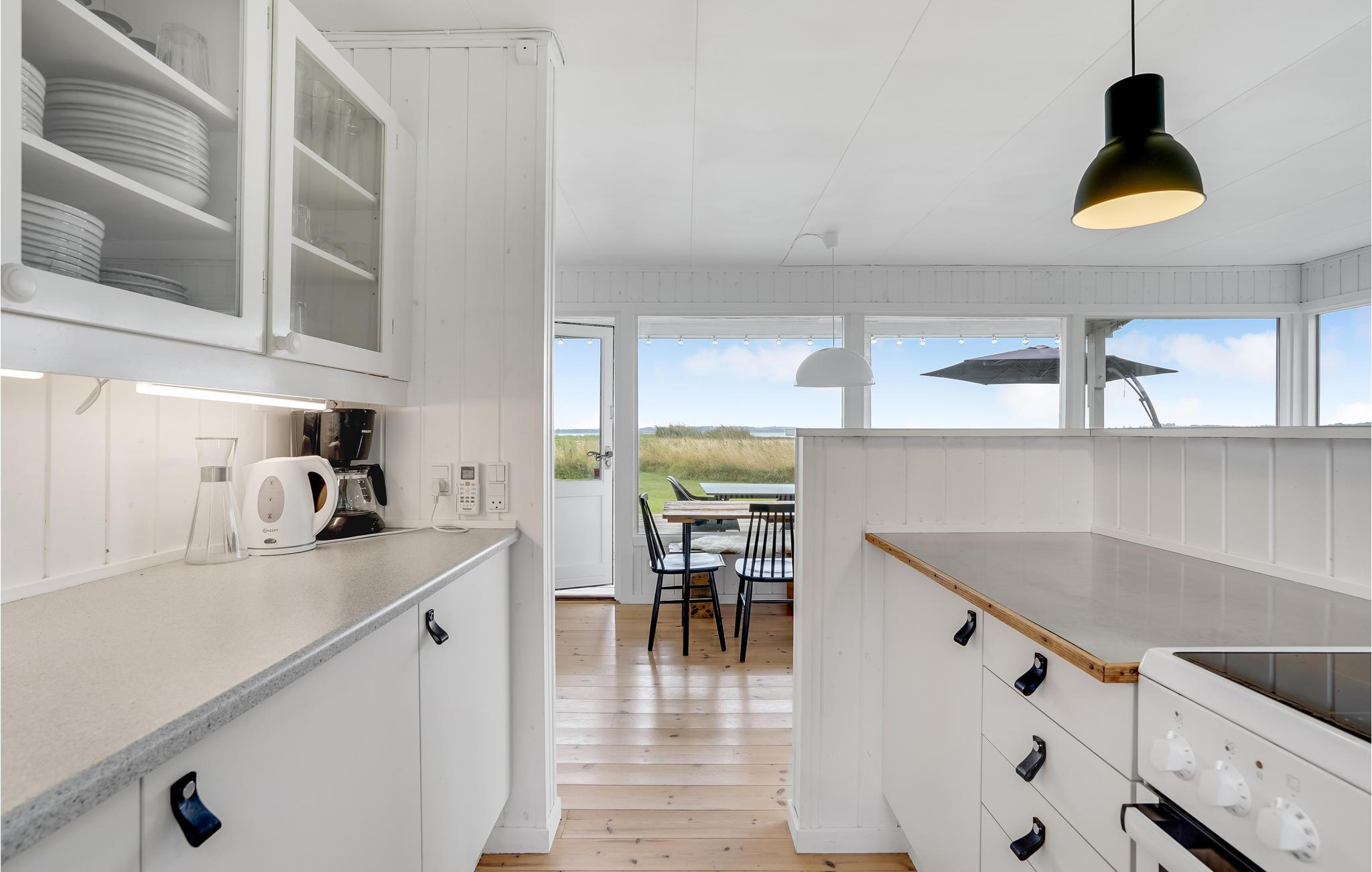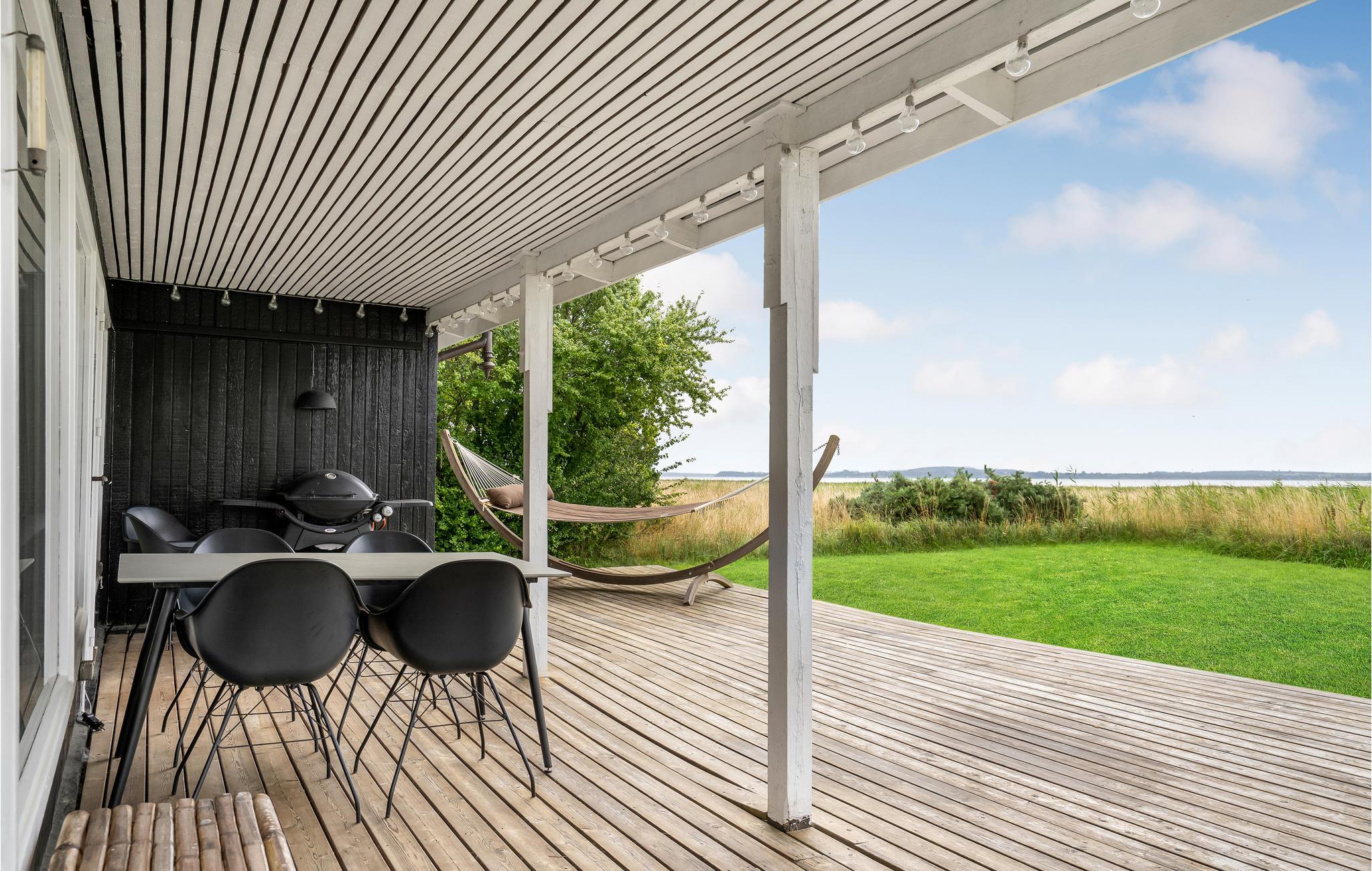 Dette feriehus ligger med enestående udsigt ud mod Atterup Fjord i første række på Abildøre. Huset rummer delvist åbent køkken i åben forbindelse med stuen, hvor der også er spiseafdeling samt brændeovn. Fra stuen udgang til en stor, skøn terrasse, hvor I kan sidde både overdækket og under åben himmel og nyde solen, mens den selvfangne fisk ligger på grillen. Endvidere indeholder huset to soveværelser og yderligere overnatning er mulig i annekset. Indhegnet grund.