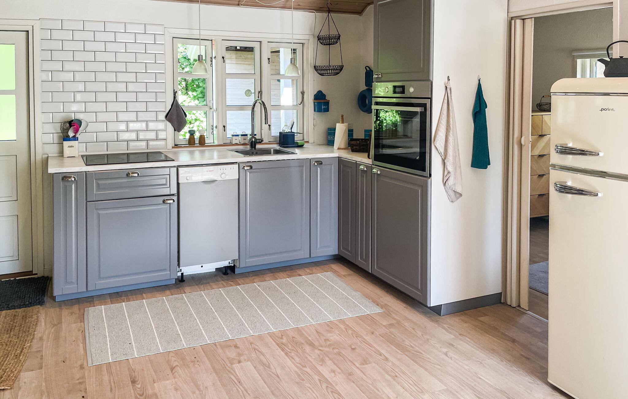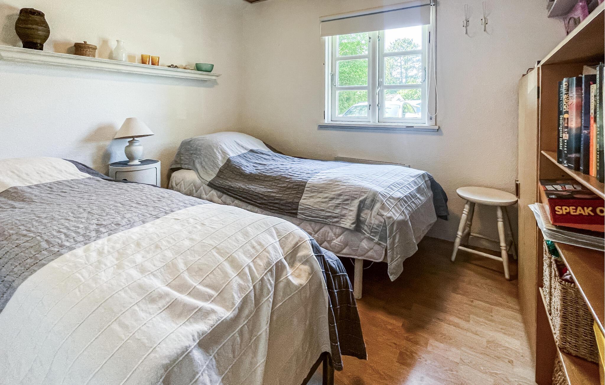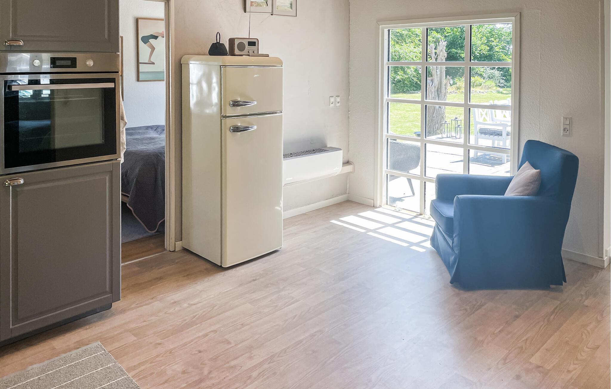Dette varmt møblerede hus er både hyggeligt og indbydende. Store vinduer lukker masser af naturligt lys ind og giver jer uhindret udsigt over den frodige have. En brændeovn sørger for hyggelig varme på kølige dage, mens de komfortable siddepladser lægger op til at læse, spille spil eller blot slappe af. Tilbring afslappende timer her med en bog eller lyt til den knitrende ild.