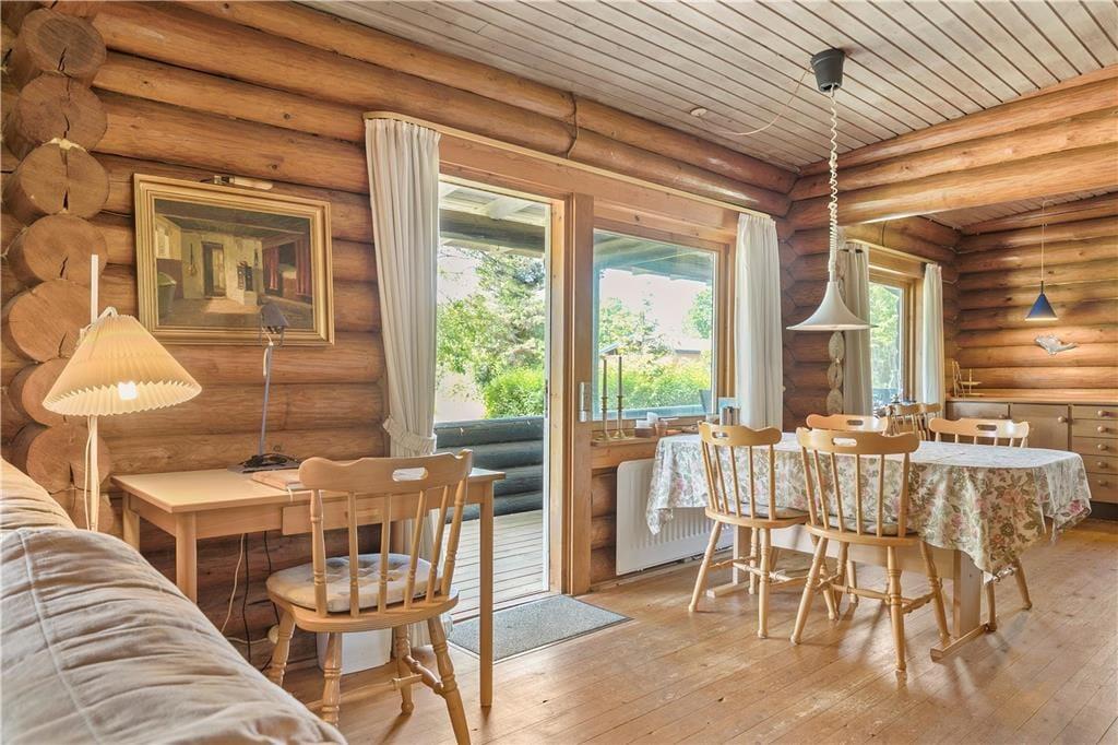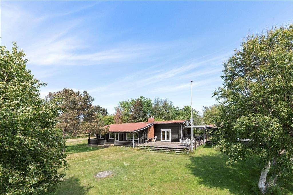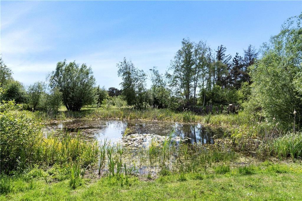 Der bydes på frisk luft og kun 150 meter til stranden. Huset har en stor skøn naturlig grund på 1.520 kvadratmeter med to delvis overdækkede træterrasser. I haven er der desuden en lille hyggelig sø. Ved sommerhuset er der havemøbler, liggestole, grill og parasol