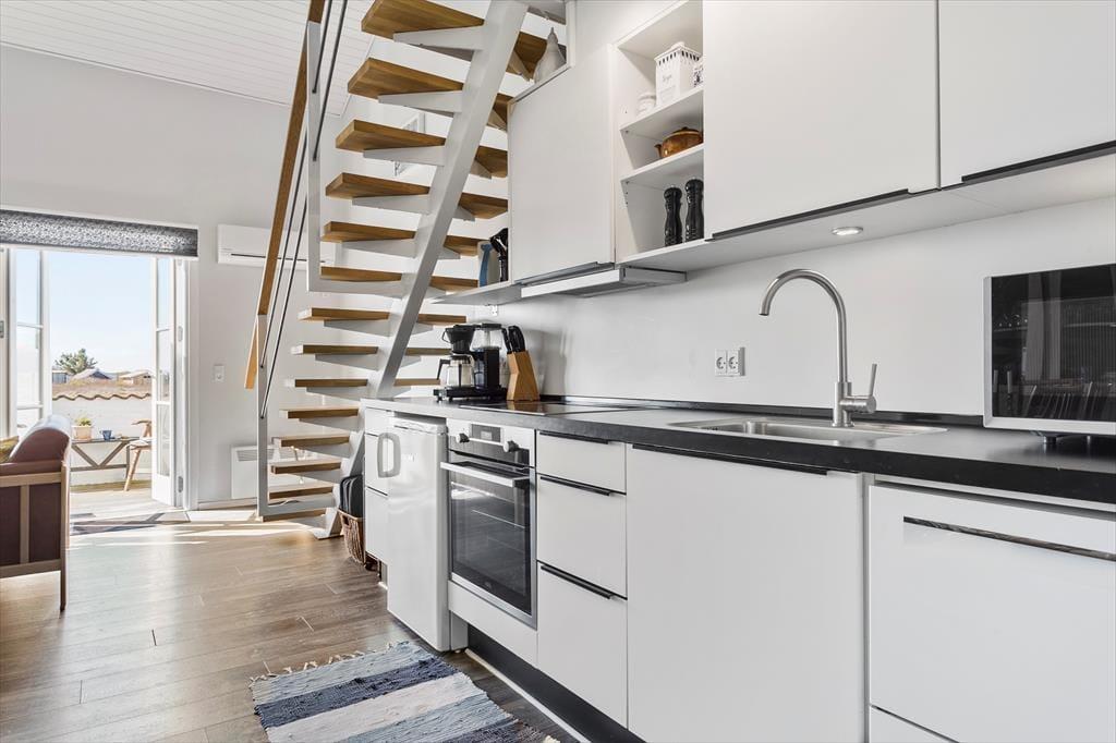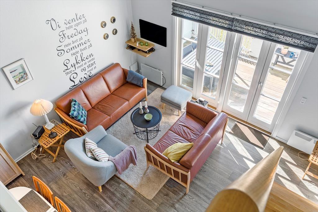 Velkommen til Havnevej 1, lejlighed 17 – et stilfuldt ferieparadis for op til seks personer. Her er rammen sat for en afslappende ferie, hvor moderne komfort møder den autentiske charme fra den lille fiskerby Agger i hjertet af Nationalpark Thy.
