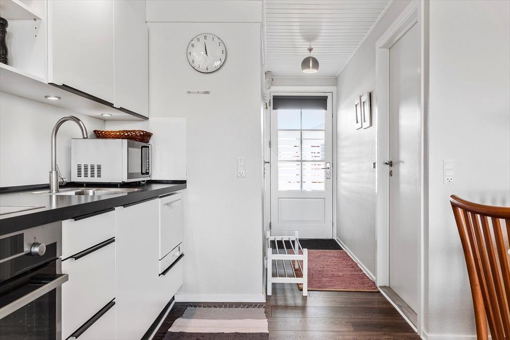 Denne lejlighed er smagfuldt indrettet med sans for detaljer og moderne komfort. Den åbne planløsning inviterer til samvær, hvor køkken, spiseplads og opholdsstue flyder sammen og skaber et lyst og indbydende rum. Her kan familien samles til hyggelige måltider eller afslappende stunder i sofaen efter en dag fyldt med oplevelser. Lejligheden er udstyret med en varmepumpe, der sikrer et behageligt indeklima året rundt. Med tre soveværelser er der plads til både store og små, og badeværelset er elegant og funktionelt med moderne faciliteter. Denne lejlighed er det perfekte sted at trække sig tilbage og lade batterierne op.