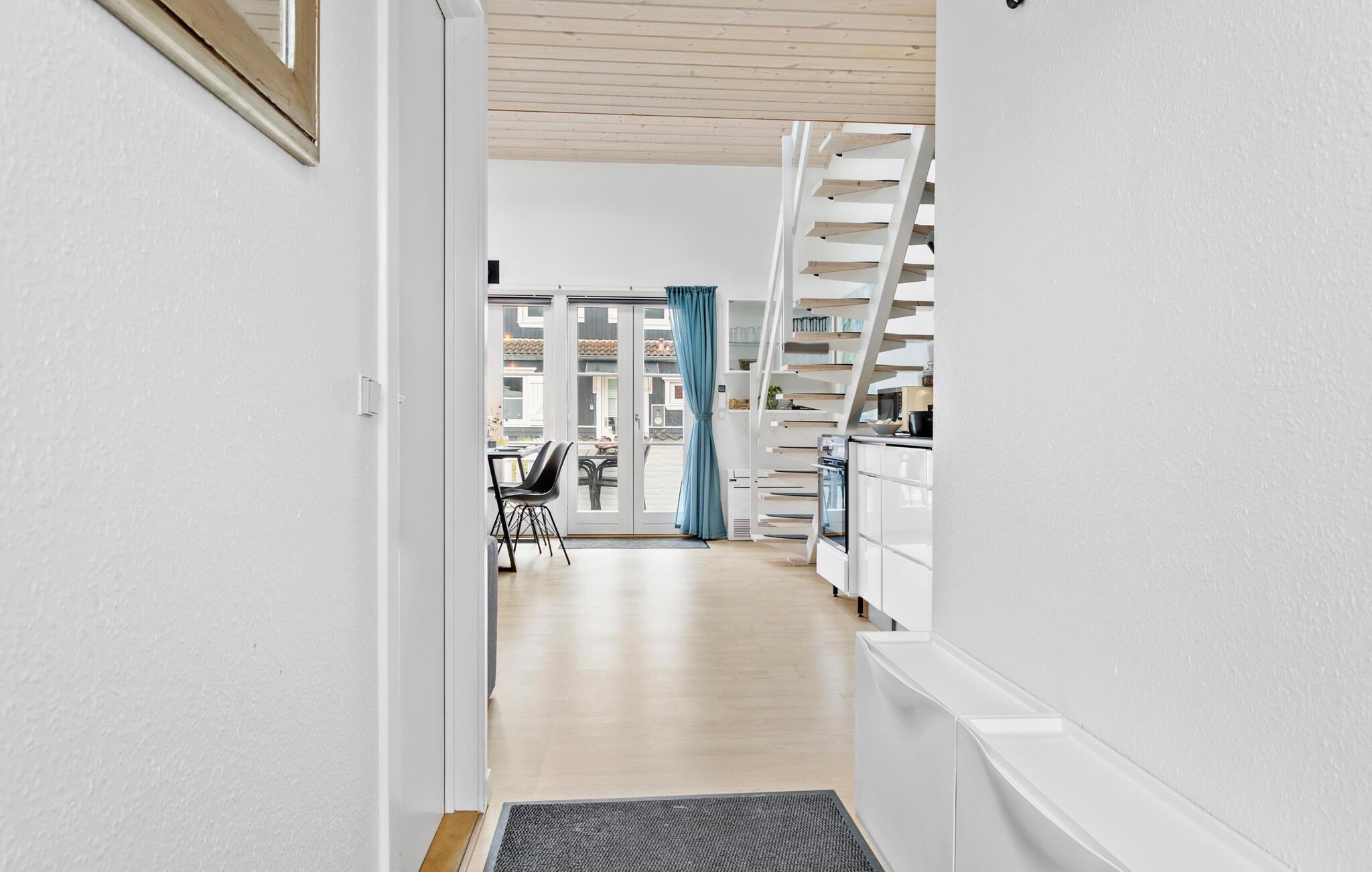 Velkommen til denne indbydende lejlighed, der ligger tæt på søer, fjord og hav, og hvor I får de ideelle rammer for et herligt ophold med familien. Lejligheden er flot og moderne indrettet over to etager i gode materialer, blide farveskalaer og med alle de faciliteter, I behøver for at tilberede familiens livretter i køkkenet og nyde dem ved spisebordet med udsigt til det fri. Efter aftensmaden kan I hive brætspillene frem eller sætte jer godt til rette i sofaen med snacks og en god film på tv'et, mens I lægger planer for de kommende dage.