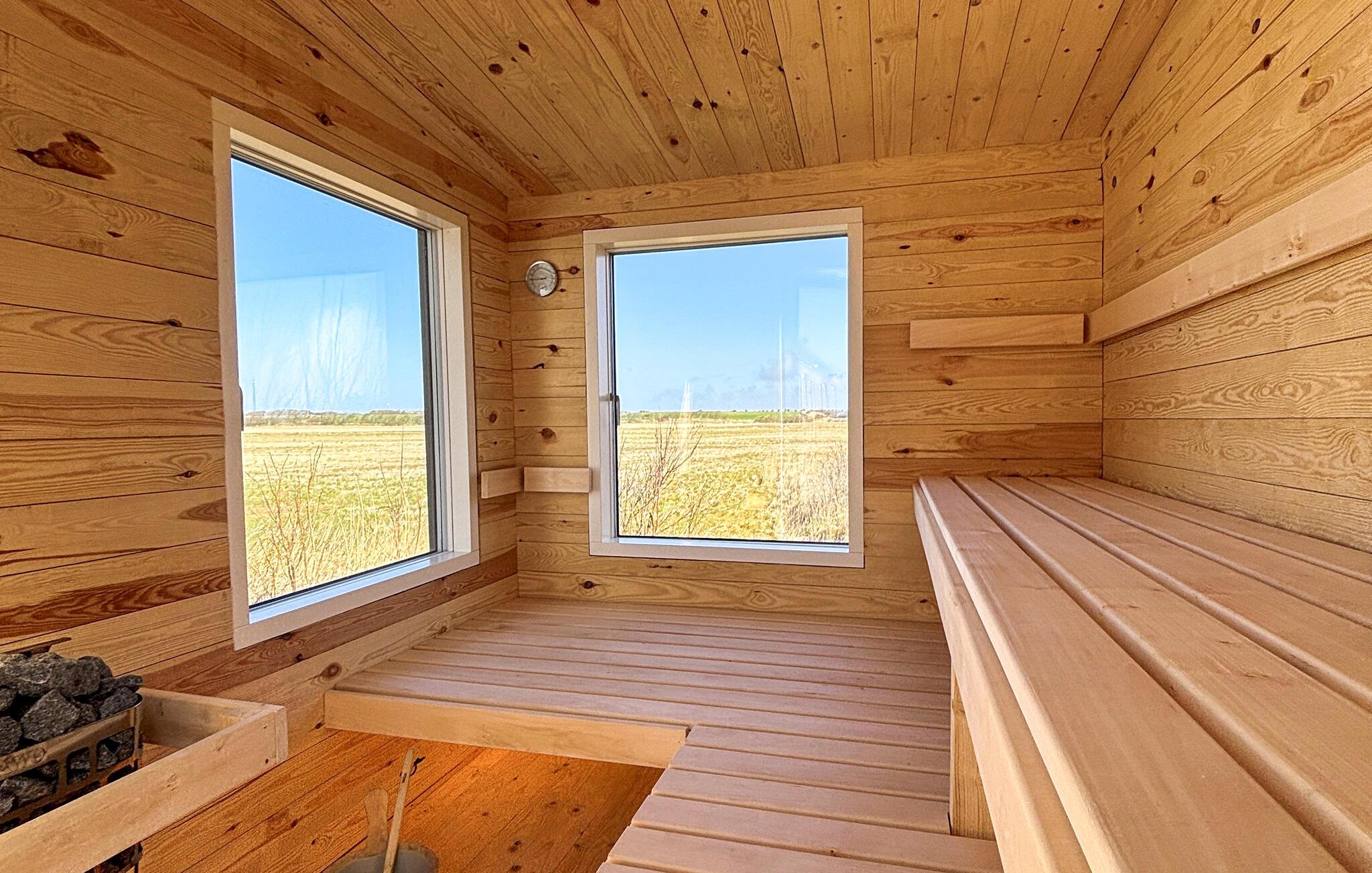 Tilbring afslappende stunder udendørs. Sid på den rummelige tagterrasse og nyd udsigten over markerne og fjorden. Brug de møblerede terrasseområder til udendørs spisning eller slap af i behagelige lænestole. Forkæl jer selv i det finske træbadekar og forkæl jer selv med lidt afslapning under stjernerne.