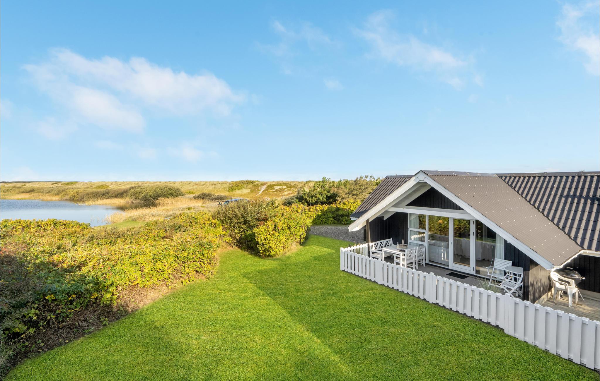 Omgivet af klitter og med udsigt over en sø venter dette smukke feriehus på jer.