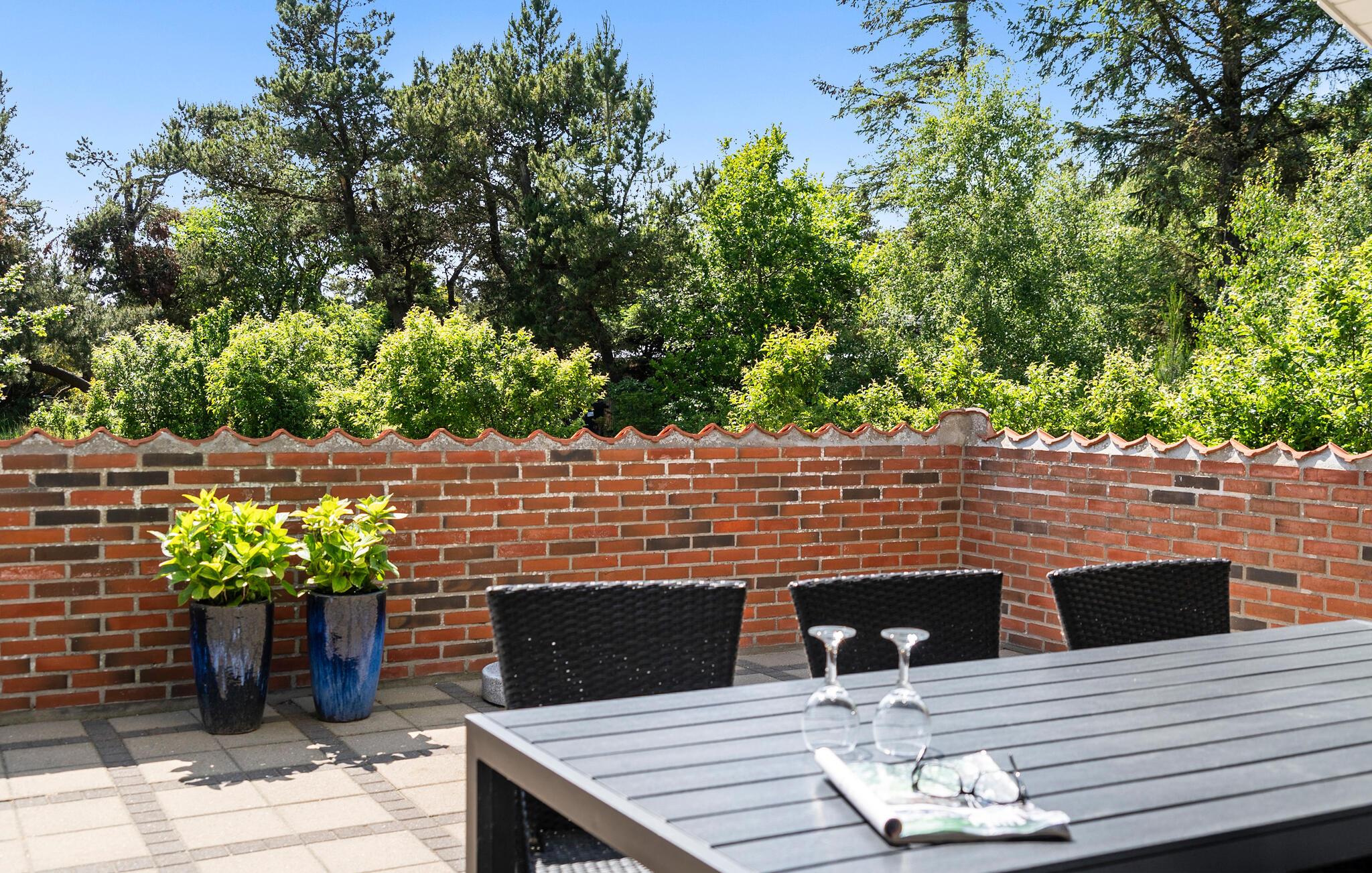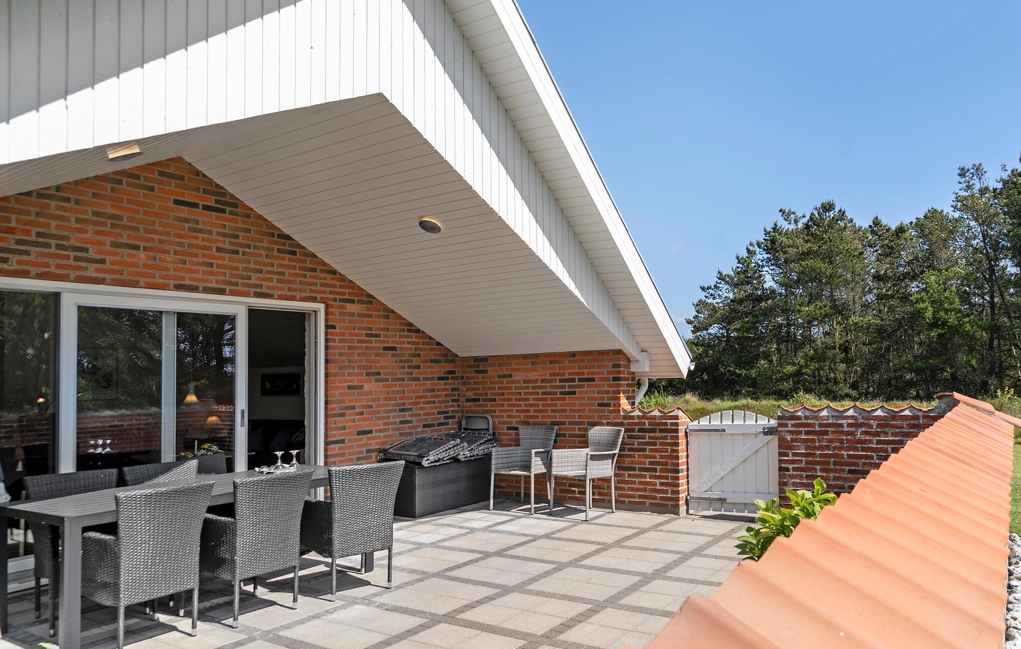 Træd ud på den store terrasse og nyd de første solstråler i et af de mange komfortable loungemøbler. Træk vejret af den friske havbrise og glæd jer til hyggelige grillaftener udendørs. Imens kan børnene more sig i det brede grønne område og udforske den omkringliggende natur.