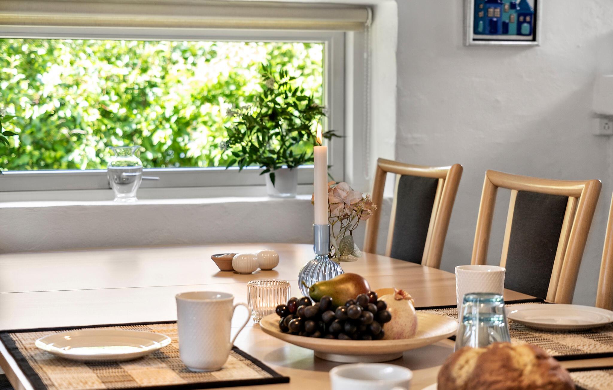 Med plads og komfort inviterer dette smukke sommerhus nær kysten jer til at tilbringe uforglemmelige øjeblikke. Tilbring en afslappende pause med jeres udvidede familie eller venner, og nyd tiden sammen i denne indbydende atmosfære. Tilbered lækre fiskeretter i det fuldt udstyrede køkken og afslut aftenen komfortabelt ved den knitrende brændeovn.
