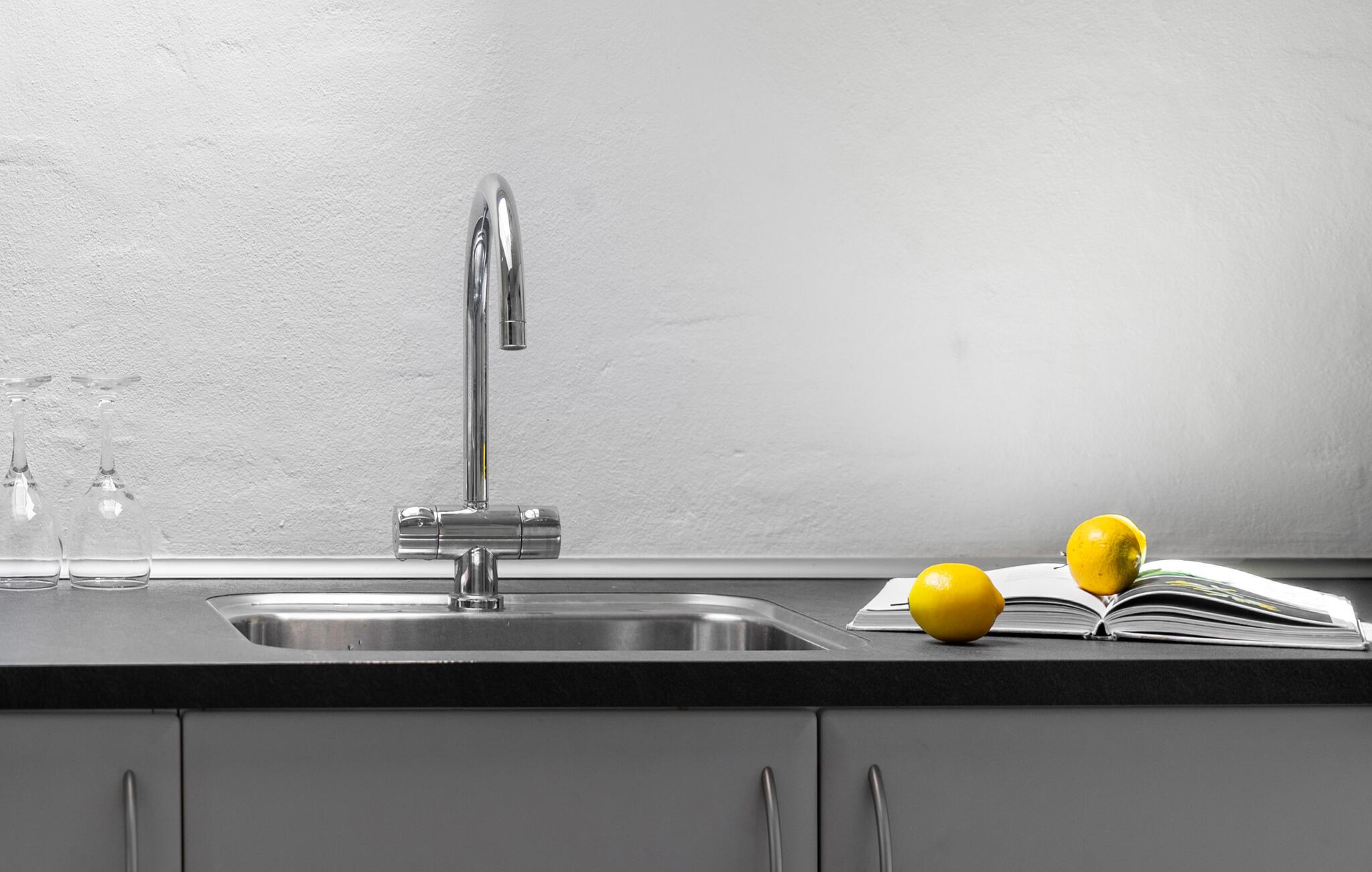 Køkkenet har v/k vand