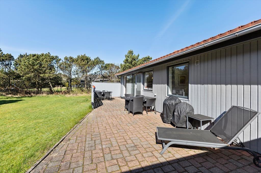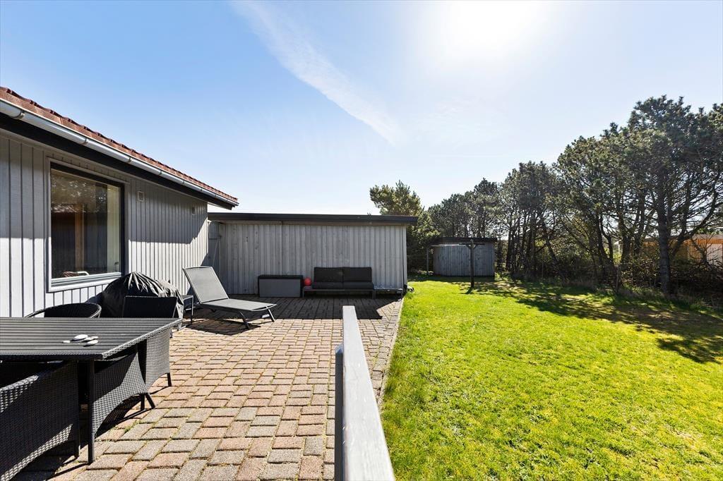 Den store, ugenerede grund omkring sommerhuset indbyder til afslapning og leg i det fri. Her er et dejligt græsareal, der egner sig perfekt til fodbold, kroket eller bare en rolig stund i hængekøjen under åben himmel. Mod øst og syd finder du rummelige terrassearealer, hvor du kan nyde solen dagen lang – og finde læ, uanset hvor vinden kommer fra. Start dagen med morgenkaffe i solen, læs en bog i skyggen midt på dagen, og saml familien til grillmiddag på terrassen, når aftensolen forgylder haven. Her er det let at finde sin egen plet, hvor ferien føles helt rigtig.