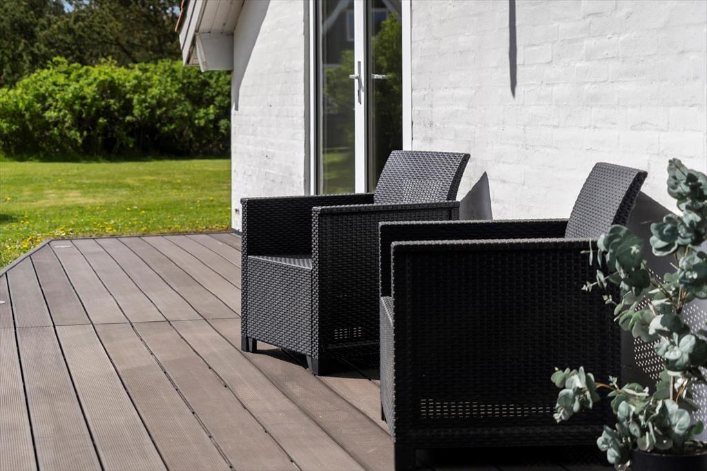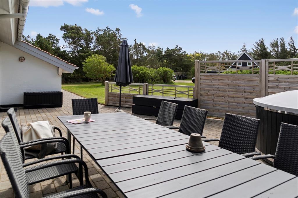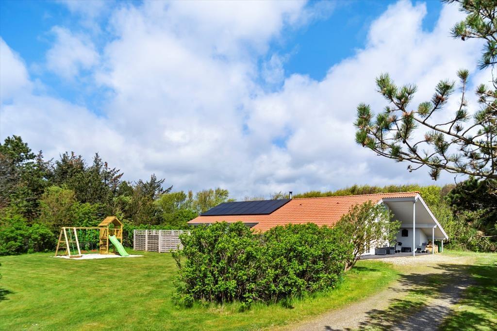 Udenfor åbner sig en skøn oase med terrasseområder, hvor du kan nyde solen eller søge skygge efter behov. Den store grund indbyder til leg og udendørs aktiviteter, mens vildmarksbadet er det perfekte sted at afslutte en dejlig dag. Her kan du læne dig tilbage og nyde den klare stjernehimmel eller den friske luft fra Vesterhavet. Sommerhusets rolige beliggenhed giver mulighed for at finde fred og ro, mens lydene fra naturen skaber den perfekte baggrundsmusik til ferien.
