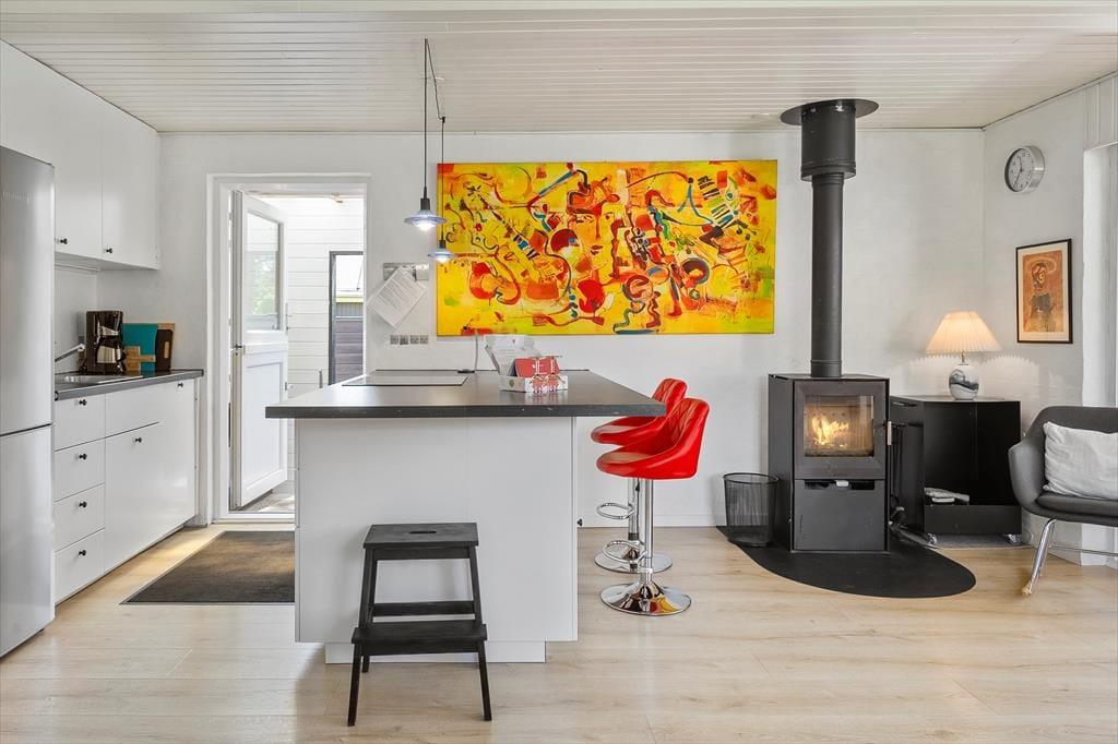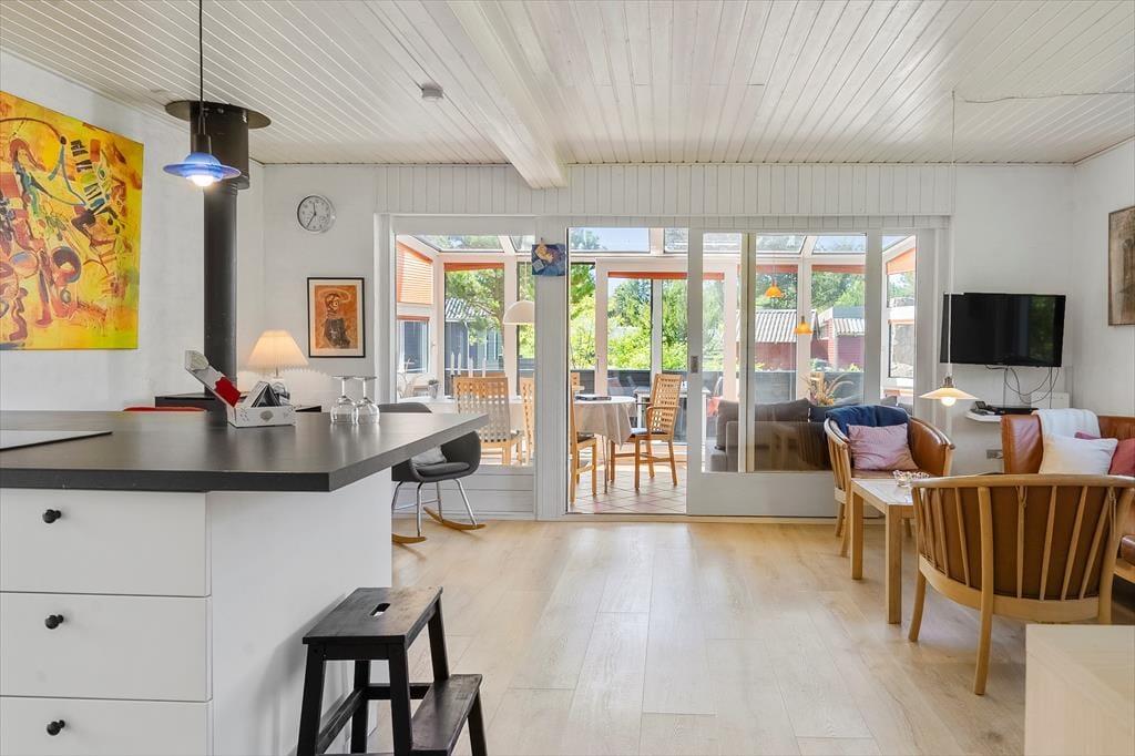 Dette velplejede og moderniserede sommerhus byder dig varmt velkommen med en indbydende atmosfære og praktiske detaljer, der sikrer komfort året rundt. Huset har en energibesparende varmepumpe og en brændeovn, som skaber en hyggelig stemning på kølige aftener. Tænd op i brændeovnen, mærk varmen brede sig, og lad familien samles om spil og gode samtaler. Indretningen er lys og moderne, og med plads til op til seks personer er der masser af rum til, at alle kan føle sig hjemme. Her er desuden plads til alle dine firbenede venner, så ingen i familien skal blive hjemme.
