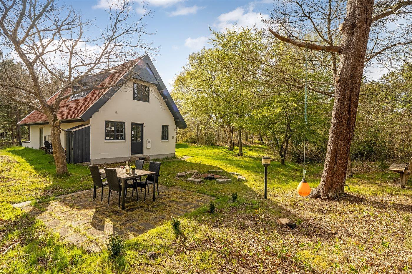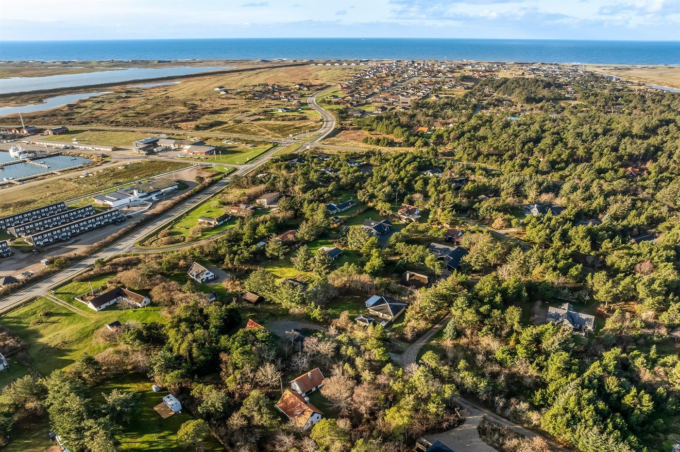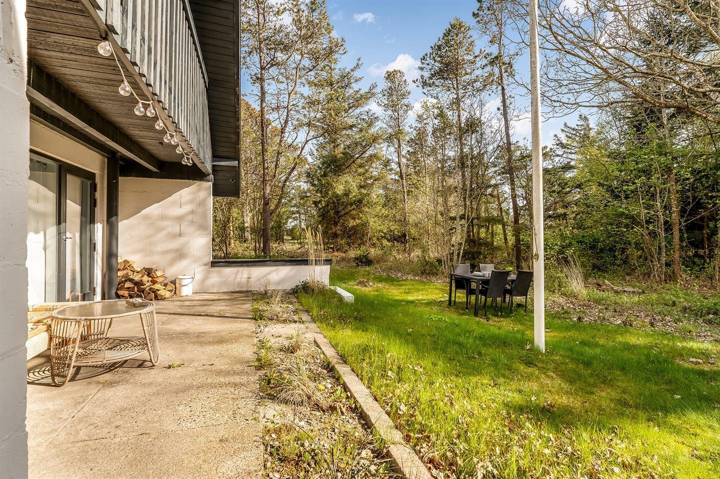 Ferieboligen er beliggende på en 2550 m² stor naturgrund. Der er 2000 m til havet. Der er 400 m til fjorden. Nærmeste forretning er beliggende i en afstand af 1500 m. Udgang til altan. Bålsted. Grill til rådighed. Parkering ved ferieboligen.