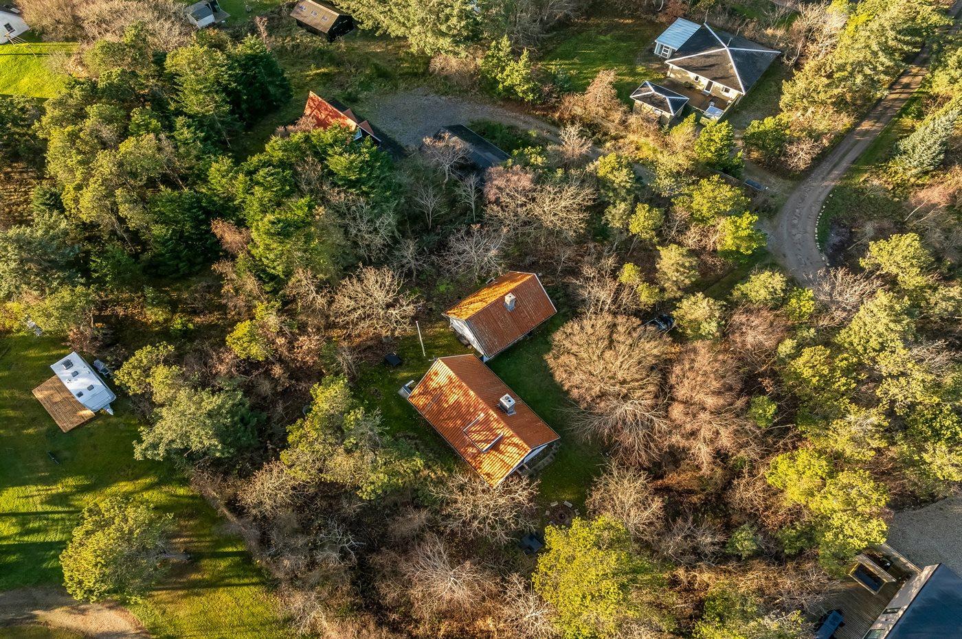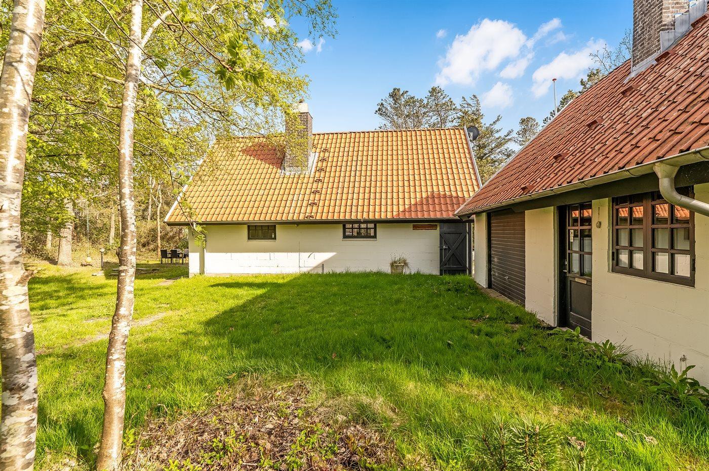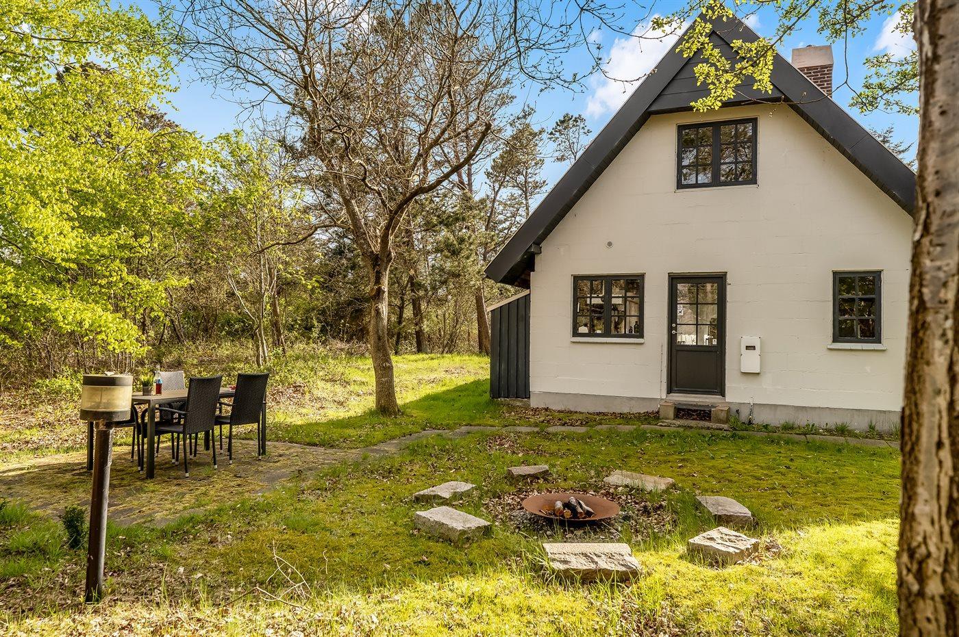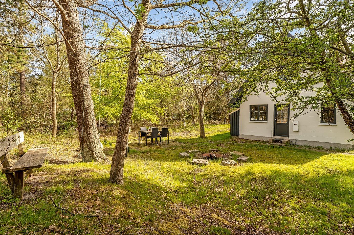 Ferieboligen er beliggende på en 2550 m² stor naturgrund. Der er 2000 m til havet. Der er 400 m til fjorden. Nærmeste forretning er beliggende i en afstand af 1500 m. Udgang til altan. Bålsted. Grill til rådighed. Parkering ved ferieboligen.