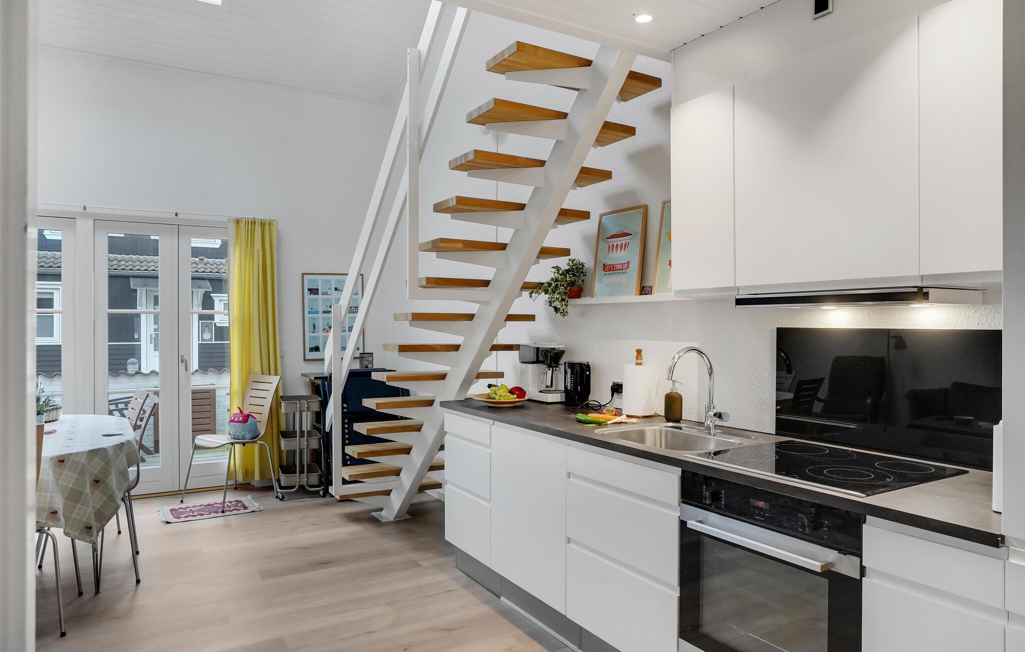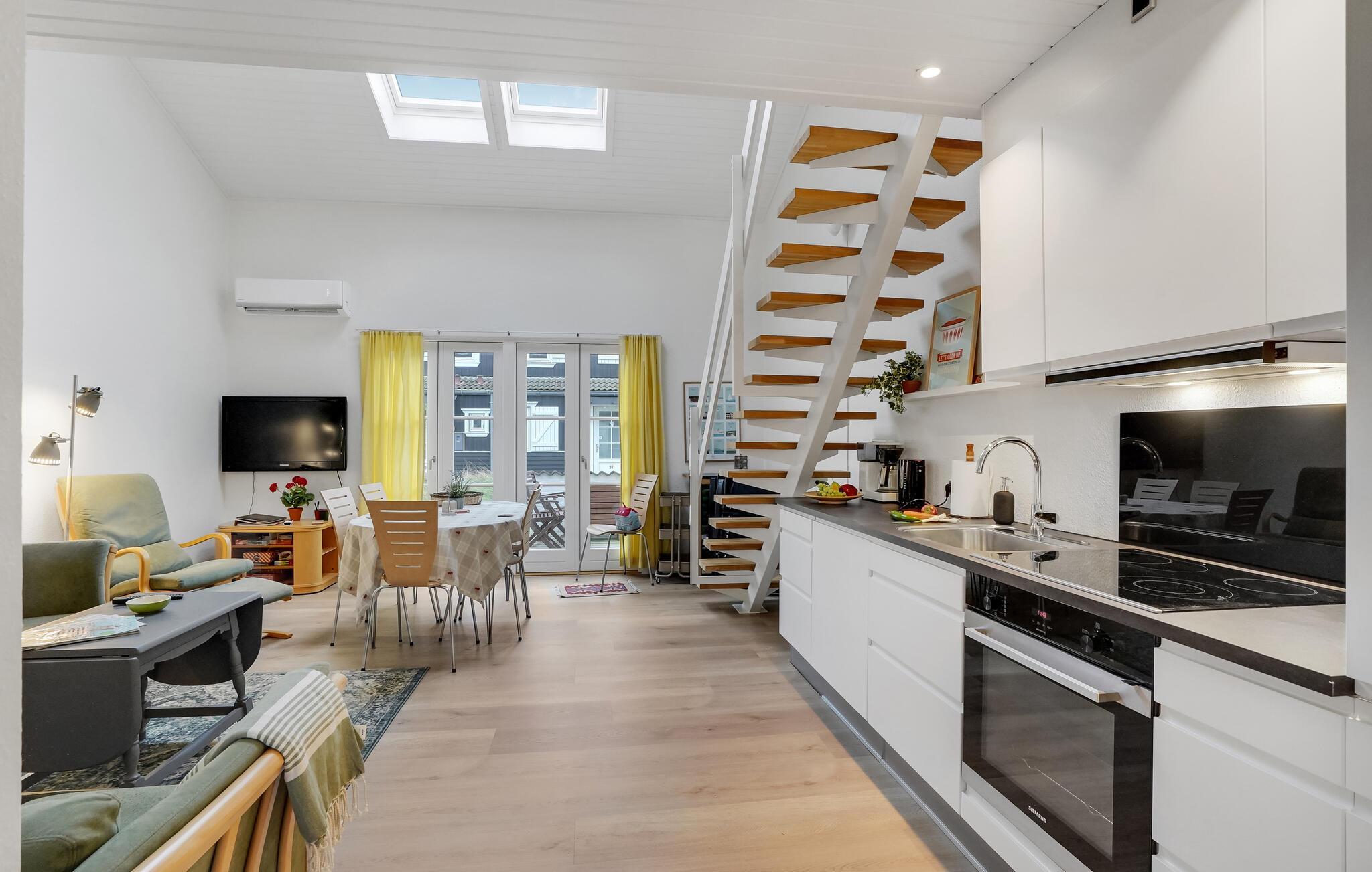 Huset er på to etager og kan rumme fem personer i tre soveværelser. På den åbne terrasse kan I tilbringe vidunderlig tid udendørs og glemme hverdagen.