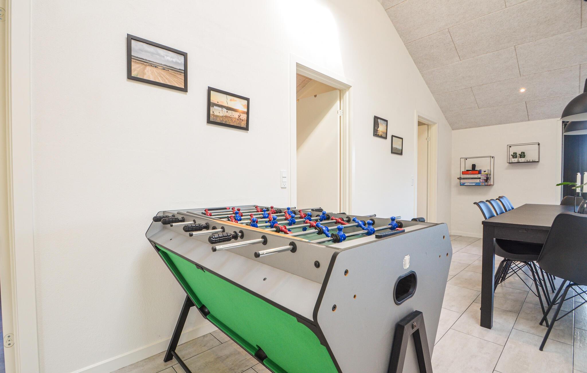 I kommer bestemt ikke til at kede jer her, huset er nemlig udstyret med bordfodbold, billard, TV og WiFi, så der er underholdning nok til mange timer. I haven er der gyngestativ og sandkasse, som familiens yngste vil elske. På terrassen kan I nemt tilberede måltiderne, der er nemlig udekøkken og grill samt havemøbler med plads til alle. På terrassen finder I også et vildmarksbad med plads til 5 personer.