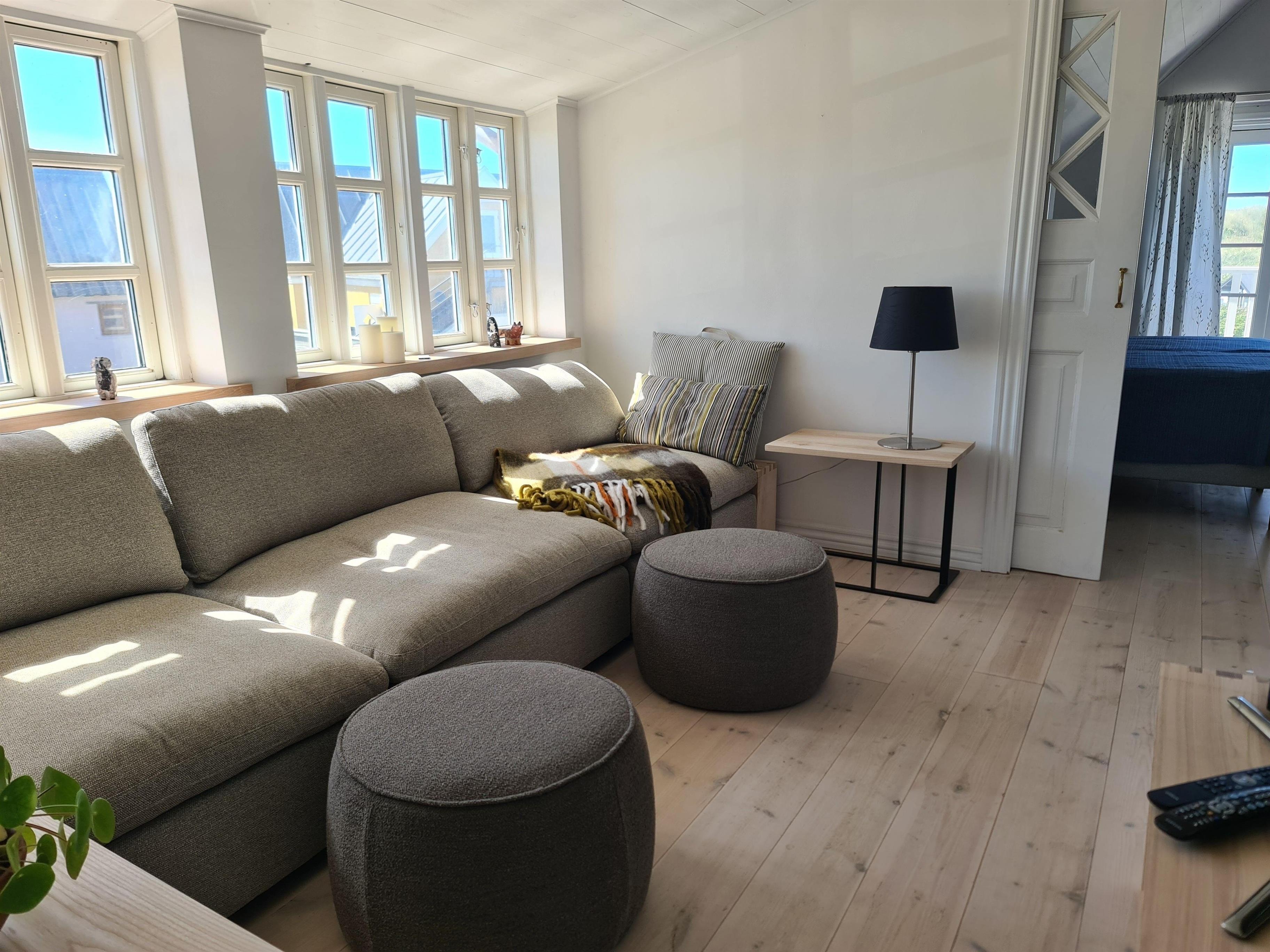Vom geräumigen Wohnzimmer, der Terrasse und dem Balkon bietet sich ein Panoramablick auf die Dünen und das Wahrzeichen der Stadt, den "Sinalmast", an dem sich Fischer früher nach ihrer Seereise orientieren konnten. Der umzäunte Garten sorgt für ungestörte Ruhe und schützt vor Wind.