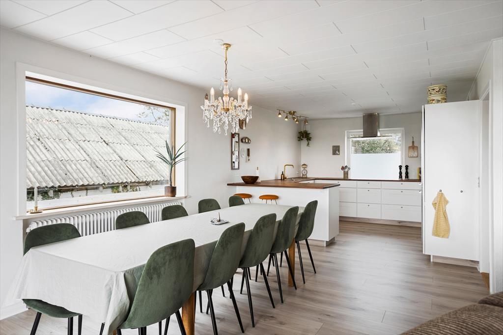 Når du træder indenfor, bliver du mødt af en lys og åben stue, hvor store vinduer lader fjordens skønhed og naturen udenfor komme helt ind i rummet. Huset er renoveret med respekt for det oprindelige hus. Stuen er forbundet med det funktionelle og veludstyrede køkken, så du nemt kan lave mad og samtidig være en del af selskabet. Fra sofaen kan du nyde en imponerende panoramaudsigt til Limfjorden og den nærliggende Aggersundbro, eller nyde varmen fra brændeovnen mens I spiller brætspil ved bordet. Huset indbyder til samvær. Der er fire lyse soveværelser, der er indrettet med fokus på komfort, så både familie og venner kan få en god nats søvn. Et velindrettet badeværelse fuldender de indendørs faciliteter og sikrer en behagelig base for din ferie.