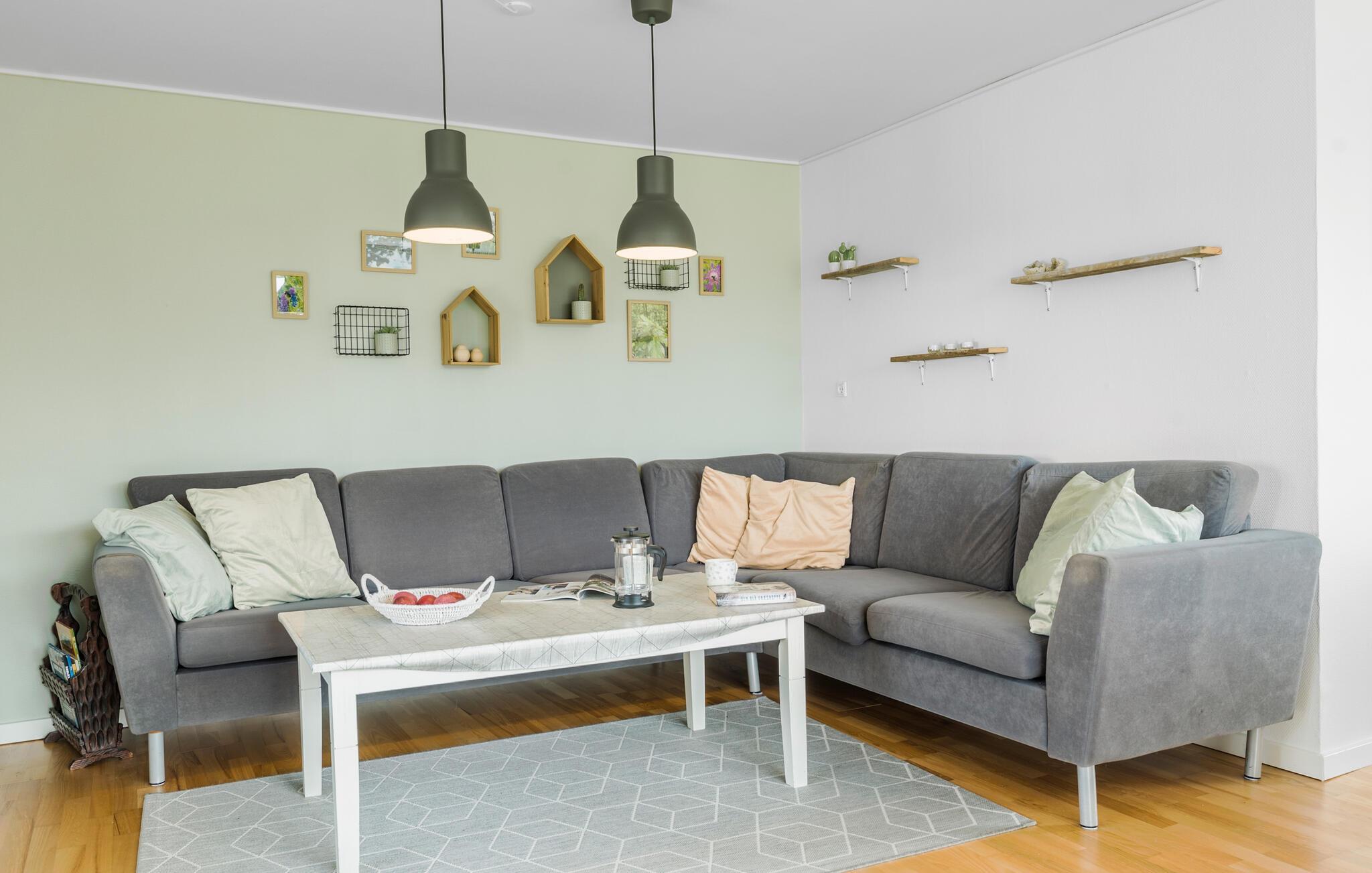 Nyd udsigten over fjorden fra dette store og familievenlige feriehus.