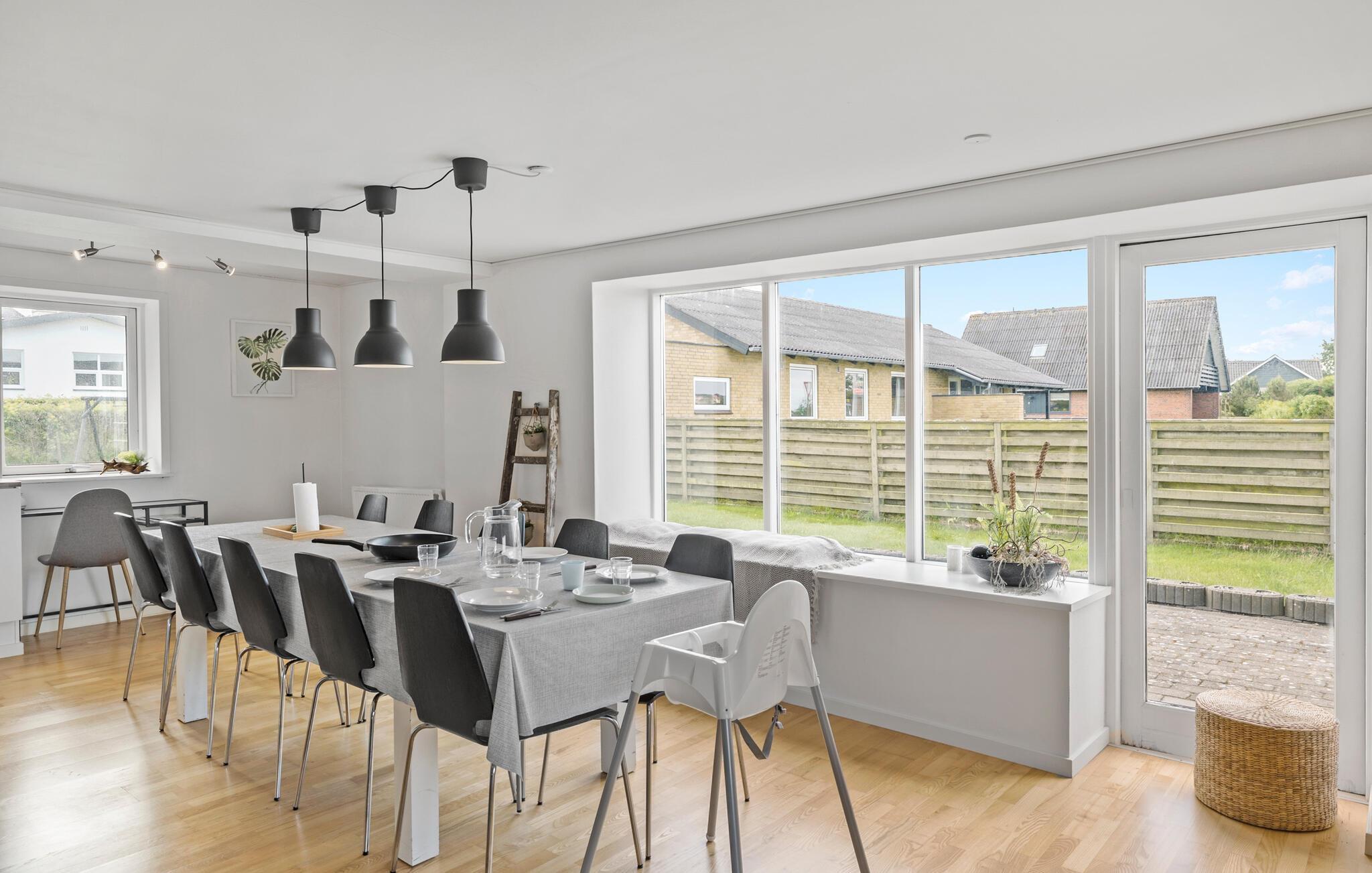 Rejs til Nordjylland med familien eller vennerne, og tilbring en afslappende ferie i dette lyse og veludstyrede hus. Tilbered lækre måltider i det fantastiske køkken, og spis sammen ved det lange bord, hvor I også kan spille sjove spil sammen og hygge jer til langt ud på aftenen.