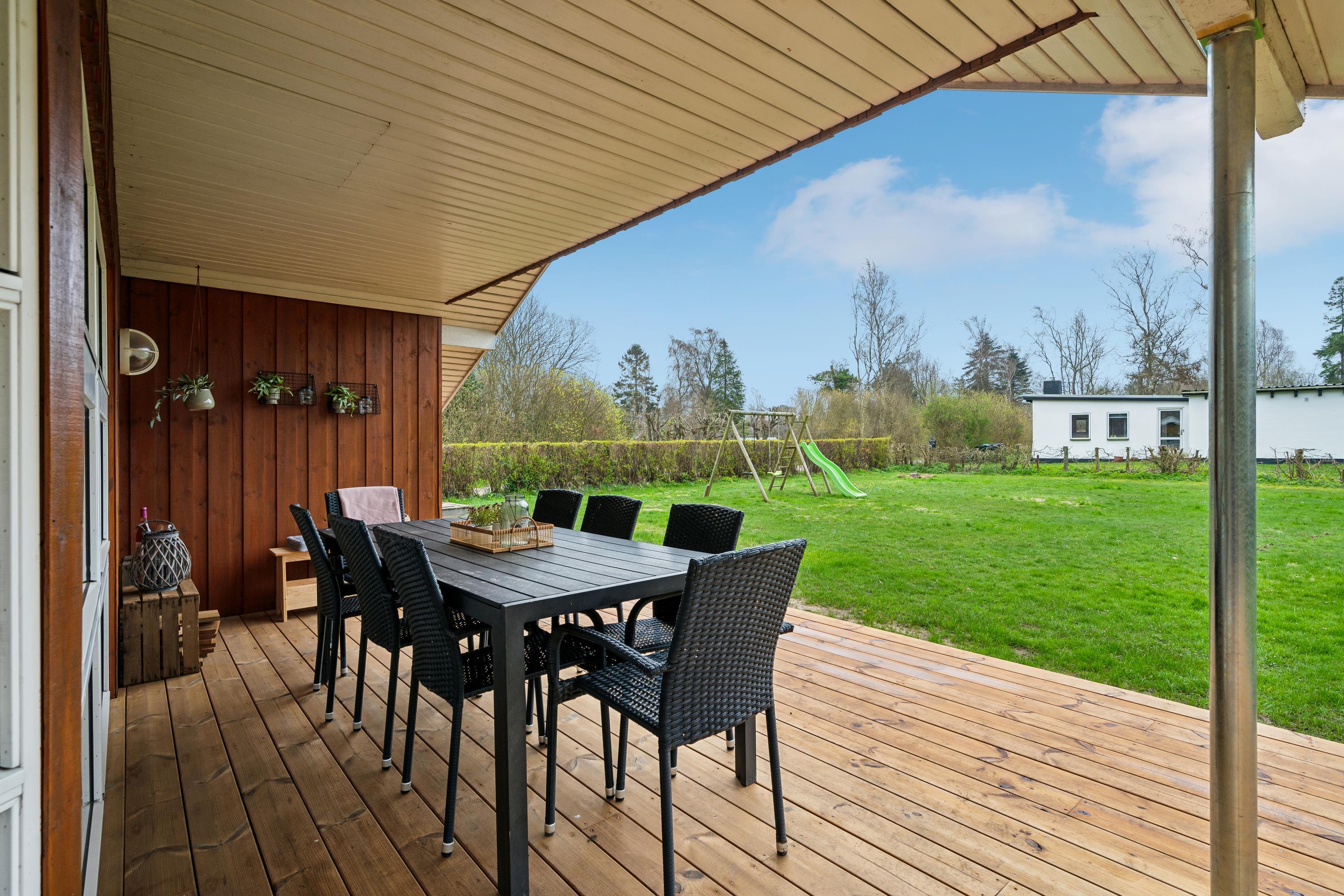 Ikke langt fra Ebeltoft by og tæt på en god badestrand finder man dette velholdte hus. Huset indeholder en hyggelig lys og velmøbleret stue med brændeovn og varmepumpe og med udgang til en skøn overdækket terrasse. I forbindelse med stuen ligger det veludstyrede køkken med b.la. opvaskemaskine samt en god spiseafdeling. Husets sovepladser fordeler sig på 4 gode soveværelser, heraf tre værelser med dobbeltsenge og et værelse med to enkeltsenge. Dejligt badeværelse med spa-bad og adgang til husets sauna samt et gæstetoilet med håndvask. Til de små feriegæster er der en høj stol samt en barneseng. I redskabsskur ved huset er der både vaskemaskine og tørretumbler som kan benyttes. Huset er omkranset af dejlig stor terrasse, hvoraf en del er overdækket.Udenfor er der også tænkt på de små feriegæster med gynger, sandkasse og rutschebane. Der er en dejlig stor græsplæne, velegnet til leg og boldspil samt udendørs hygge. Huset er beliggende i et meget børnevenligt område og 5 min gang fra en dejlig badestrand.