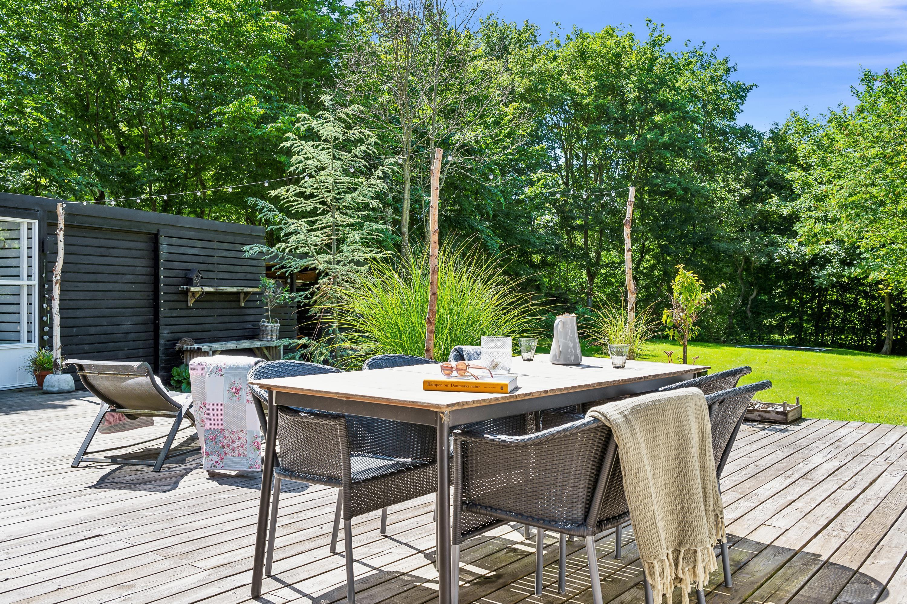 Hyggeligt sommerhus nær Ahl Strand med terrasse, udestue og stor have til leg og afslapning.